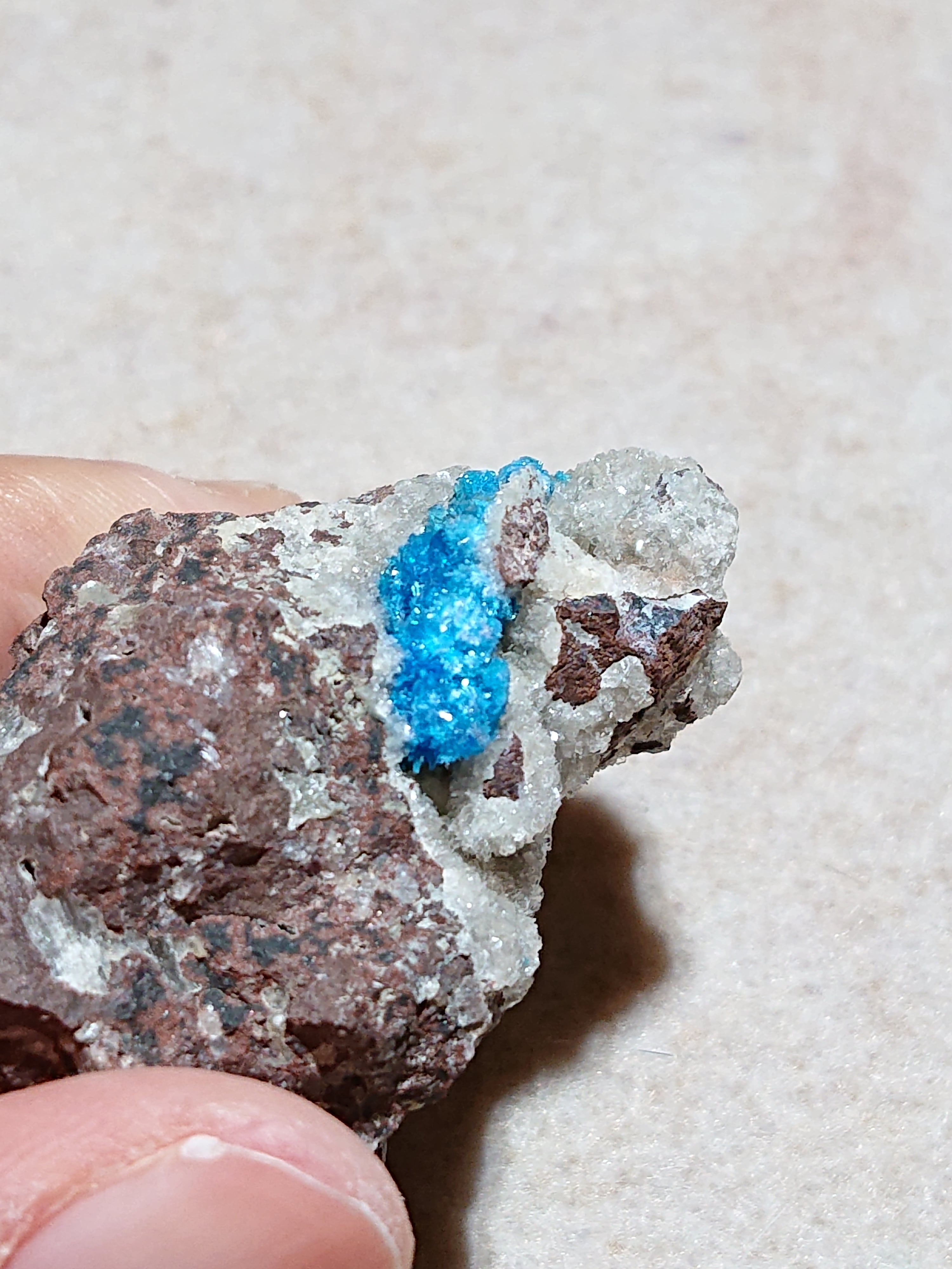 表の粒は縦幅は約1.5cm、横幅は0.5mm、その横にまた小さな結晶が寄り添うように付いています。
