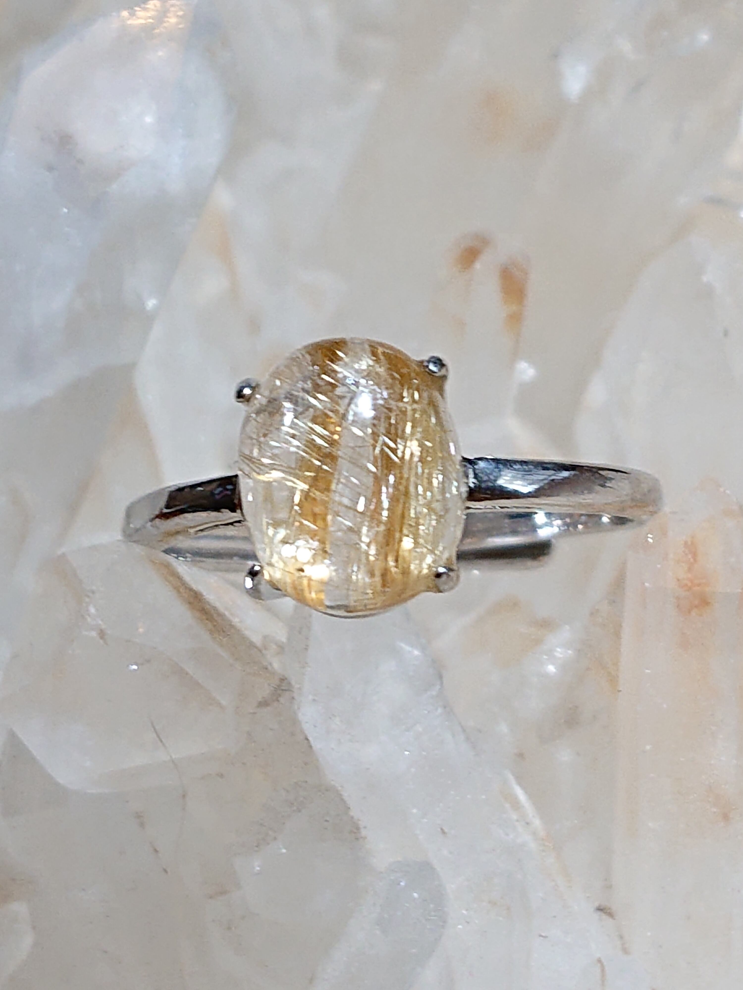 ゴールドタイチンルチルクォーツAより少し大きめの石を使ったリングになります。