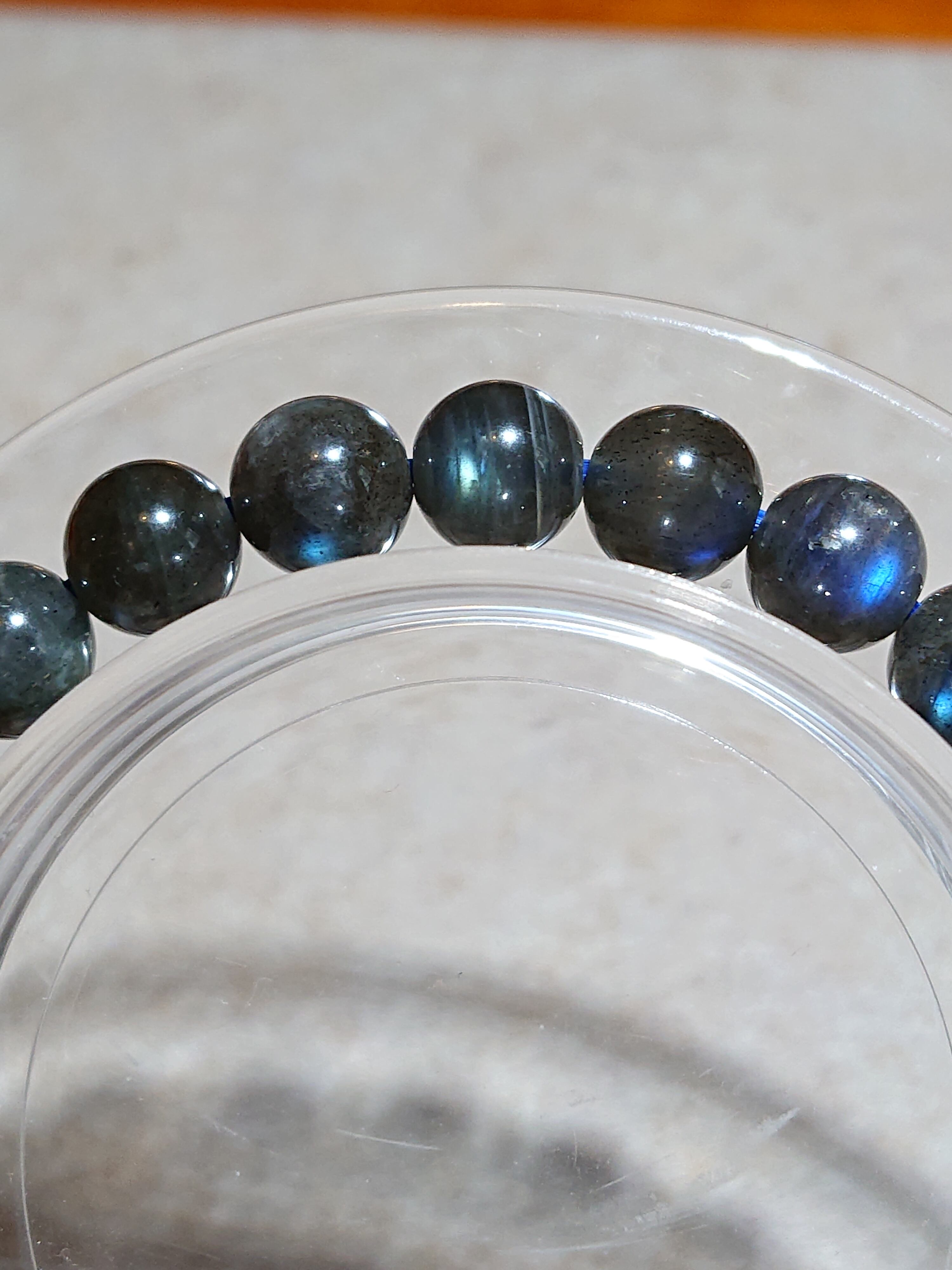 他のラブラドライトより長い時間をかけて成長したため、地色が黒く、発色が良いのが特徴です。