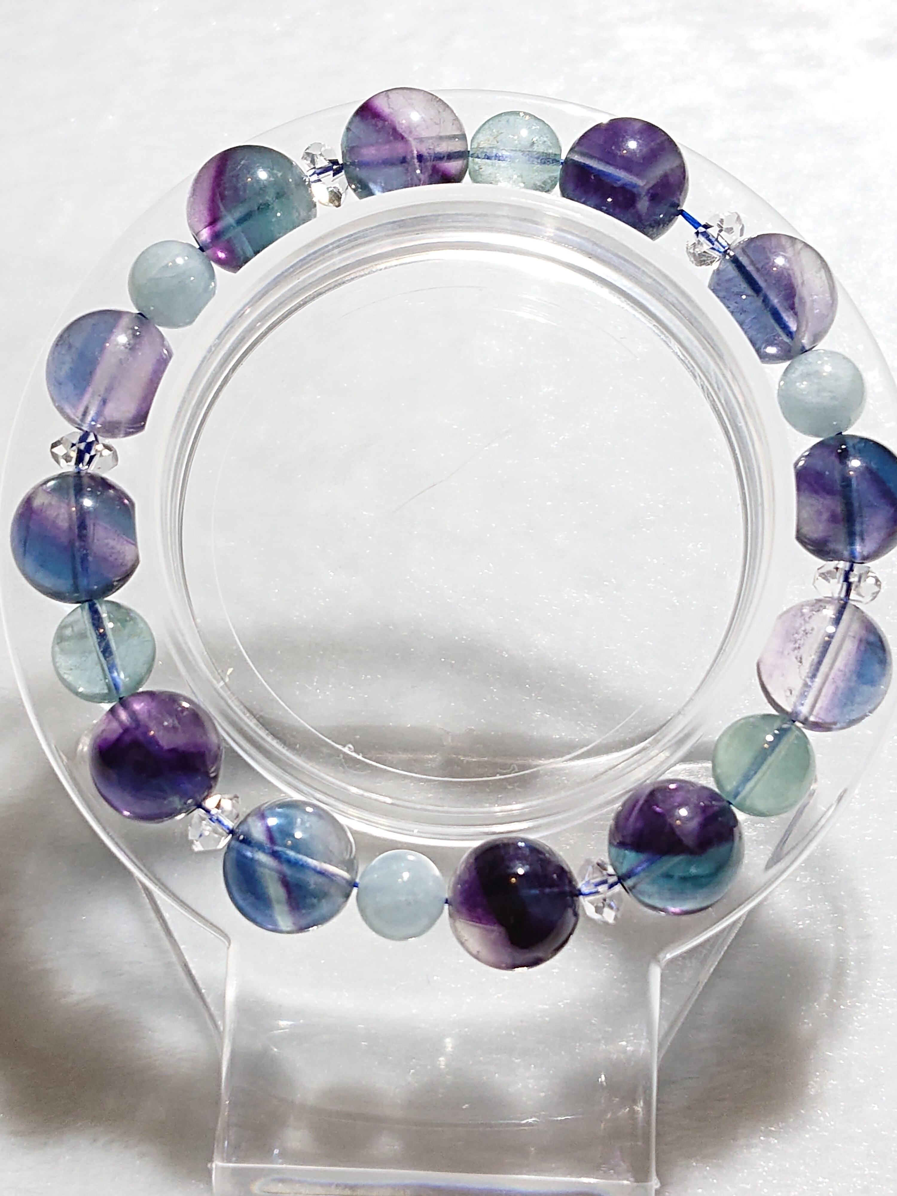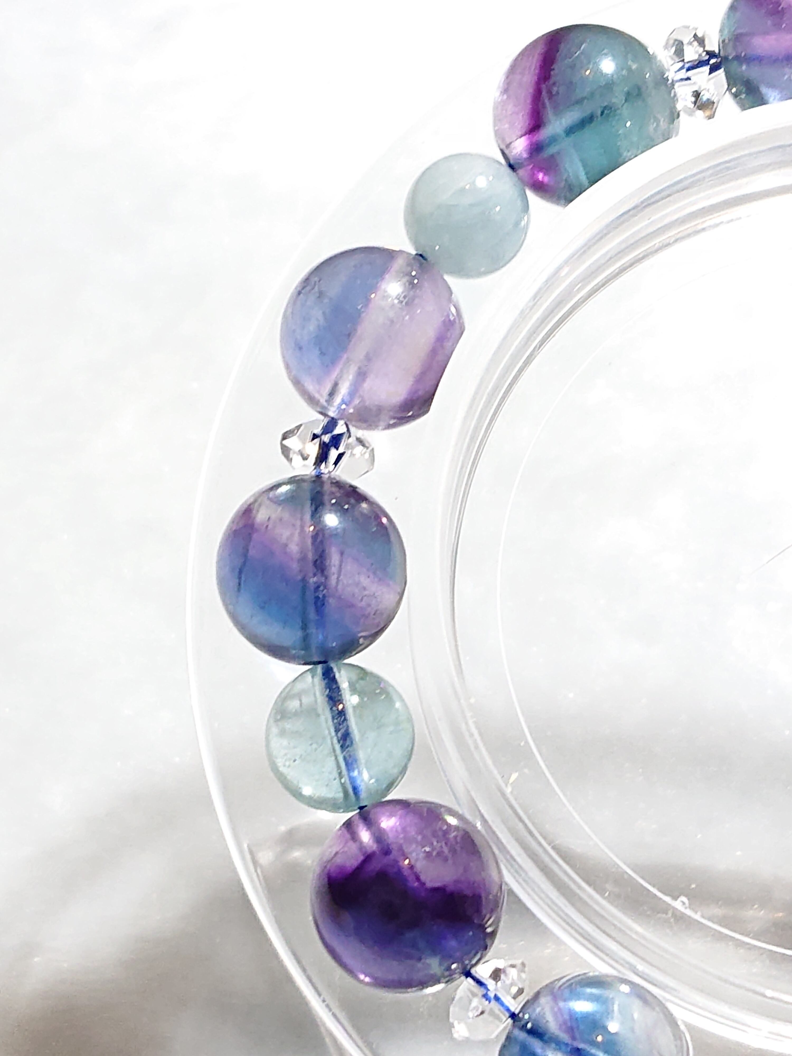 フローライトの中でも人気の高いパープル、ブルー、クリアカラーが1つになったブレスレットです。