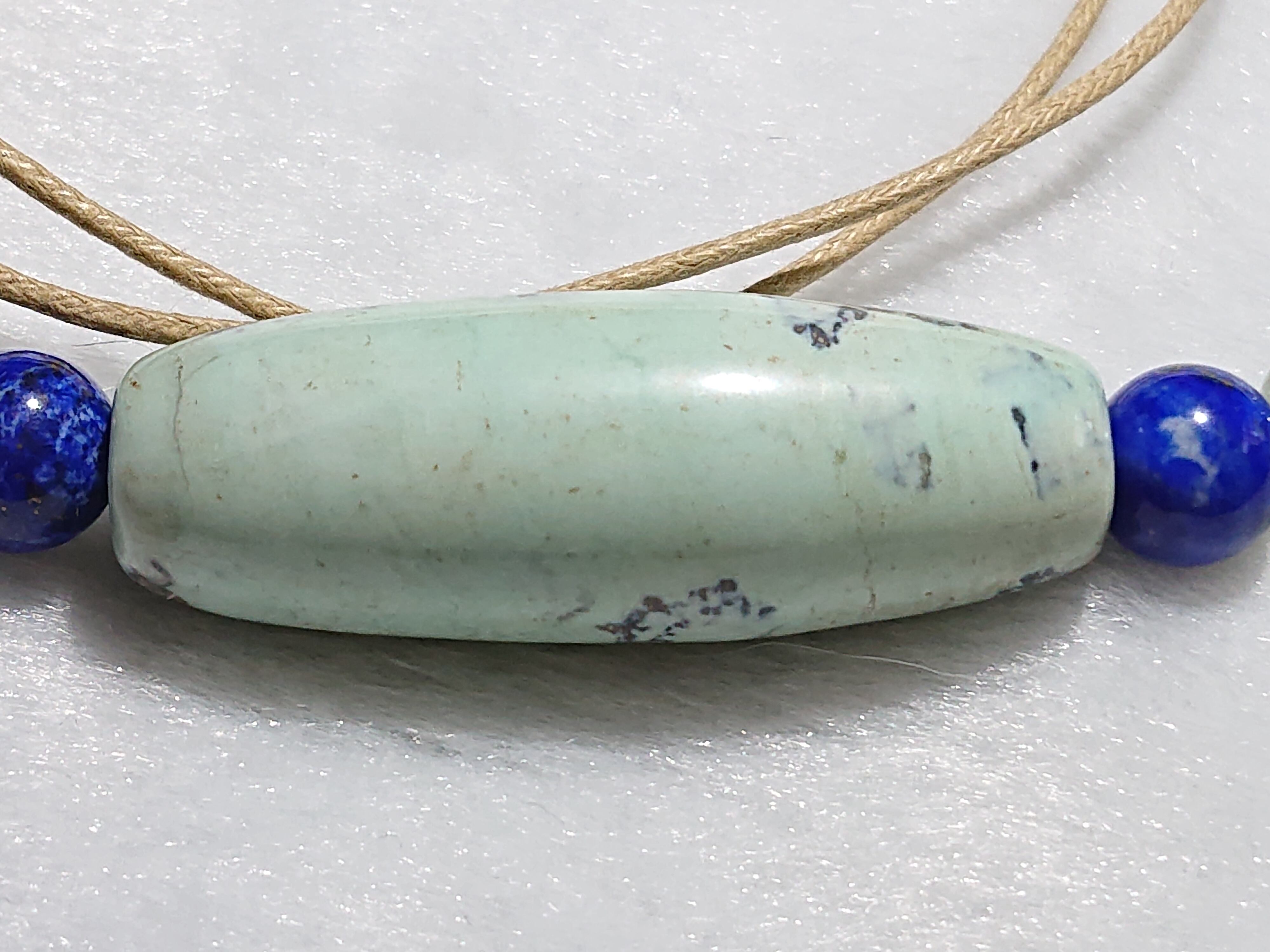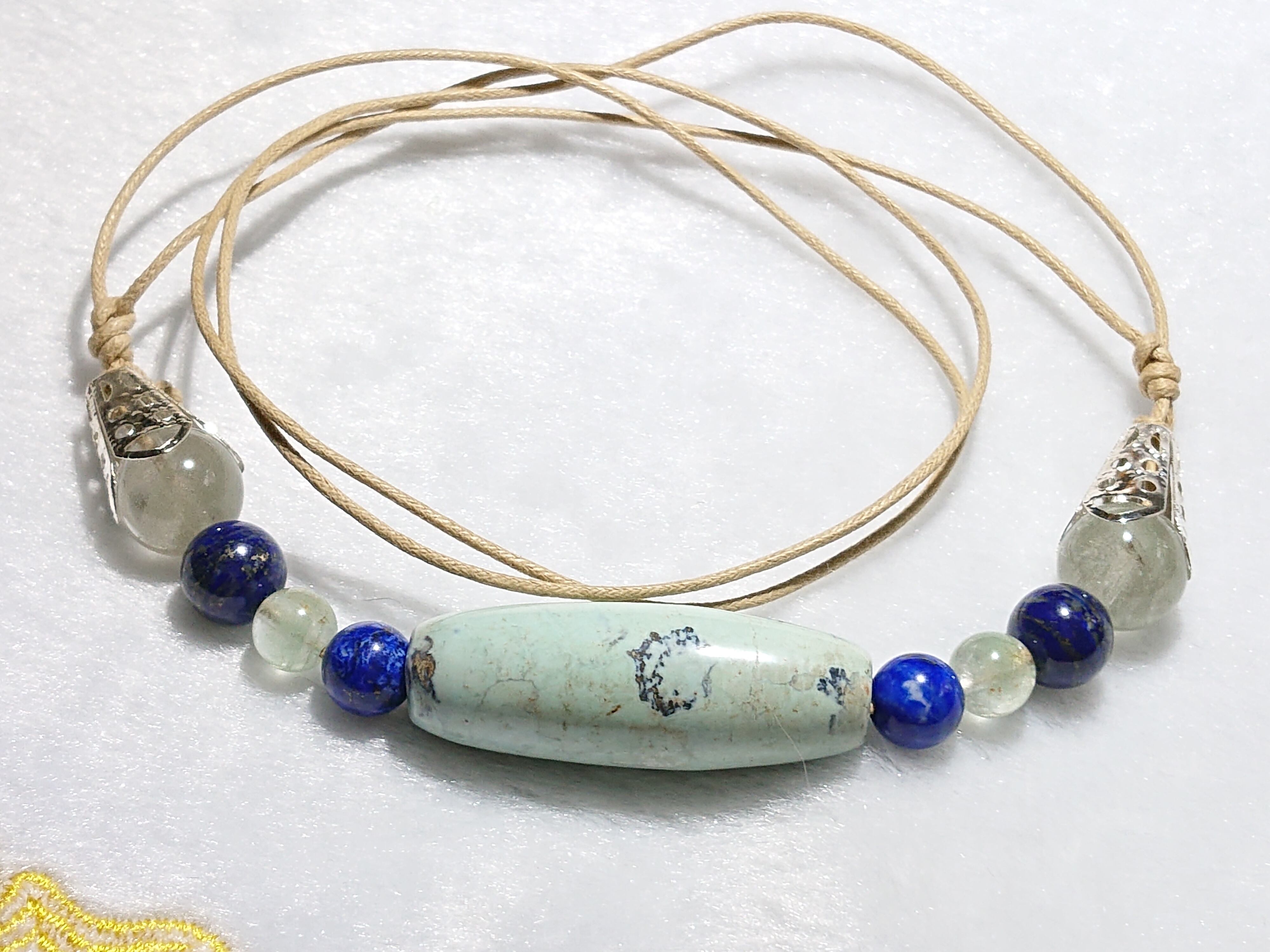 海洋碧玉(オーシャンジャスパー)天珠型、グリーンファントムクォーツ、ラピスラズリ、グリーンガーデンクォーツ