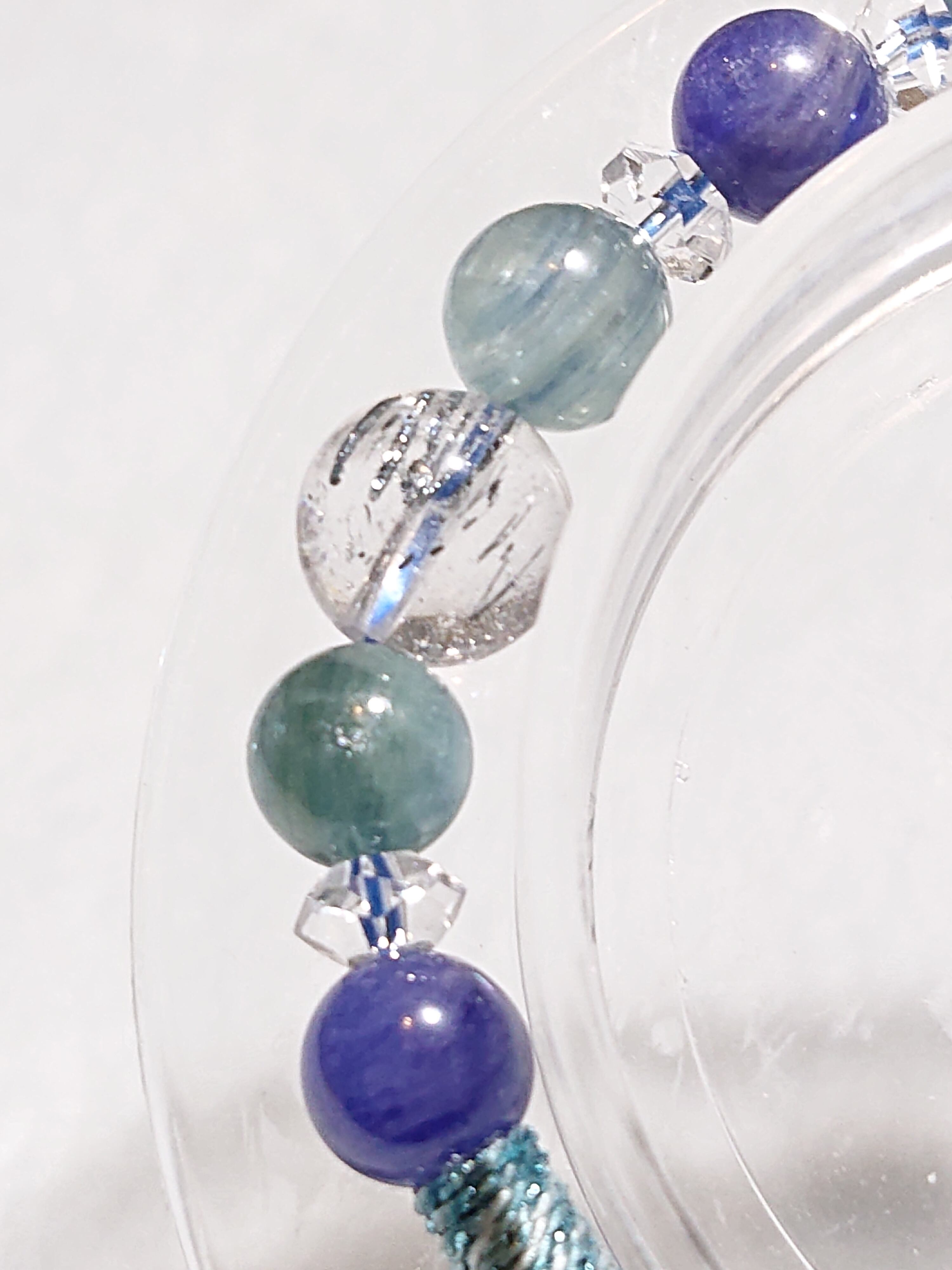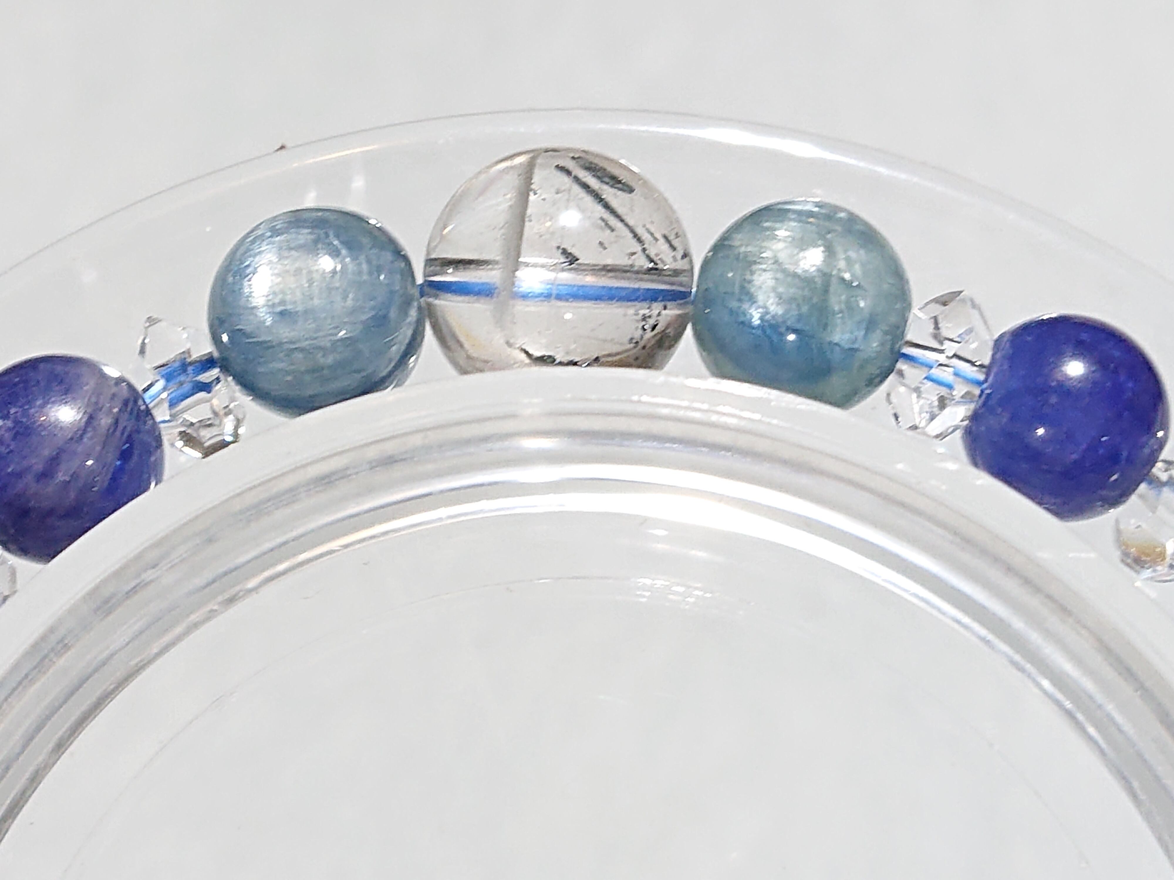 スティブナイトインクォーツ、カイヤナイト、タンザナイト、水晶(ボタン)