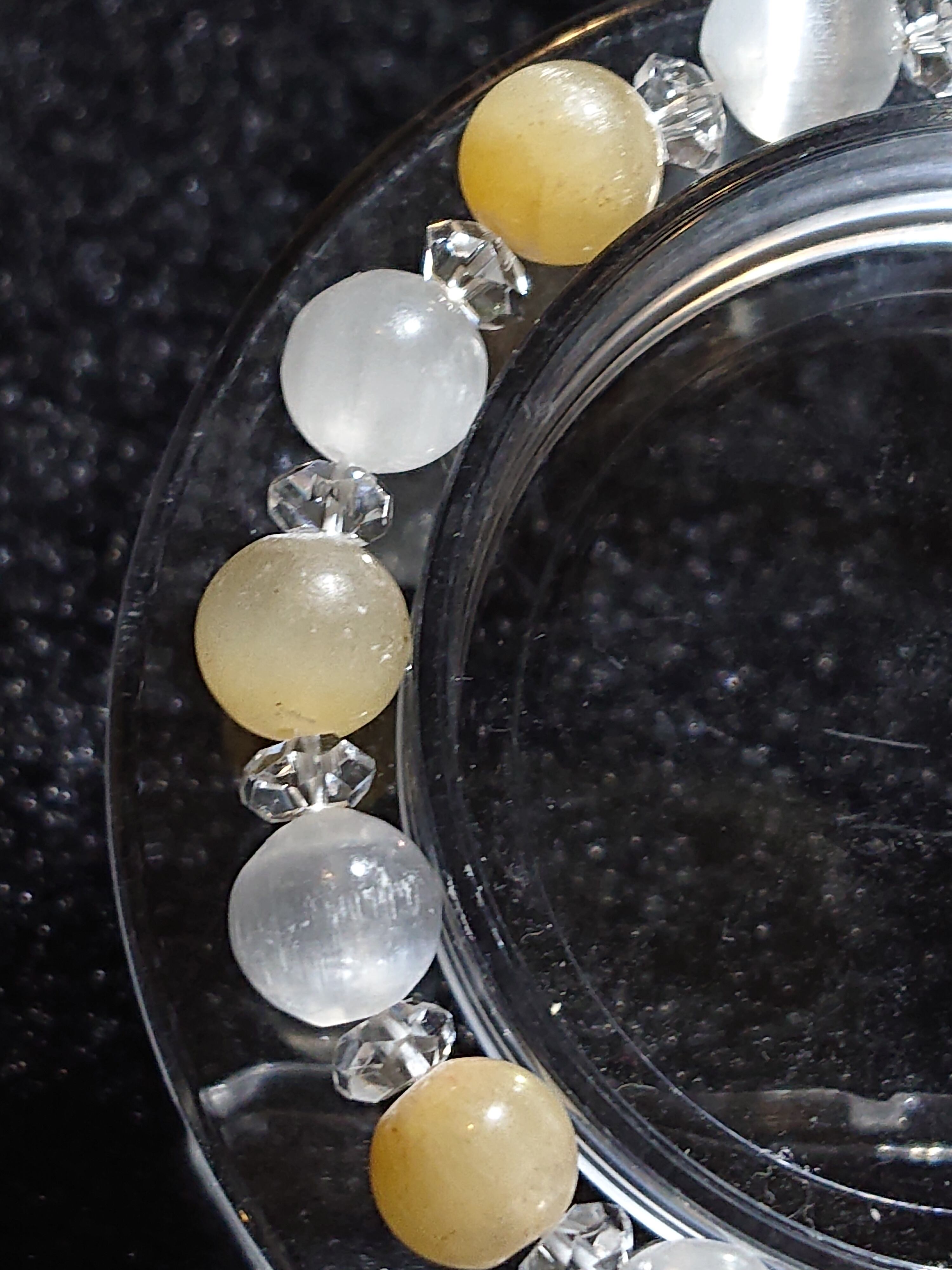 イエローカルサイト、セレナイト、水晶(ボタン)