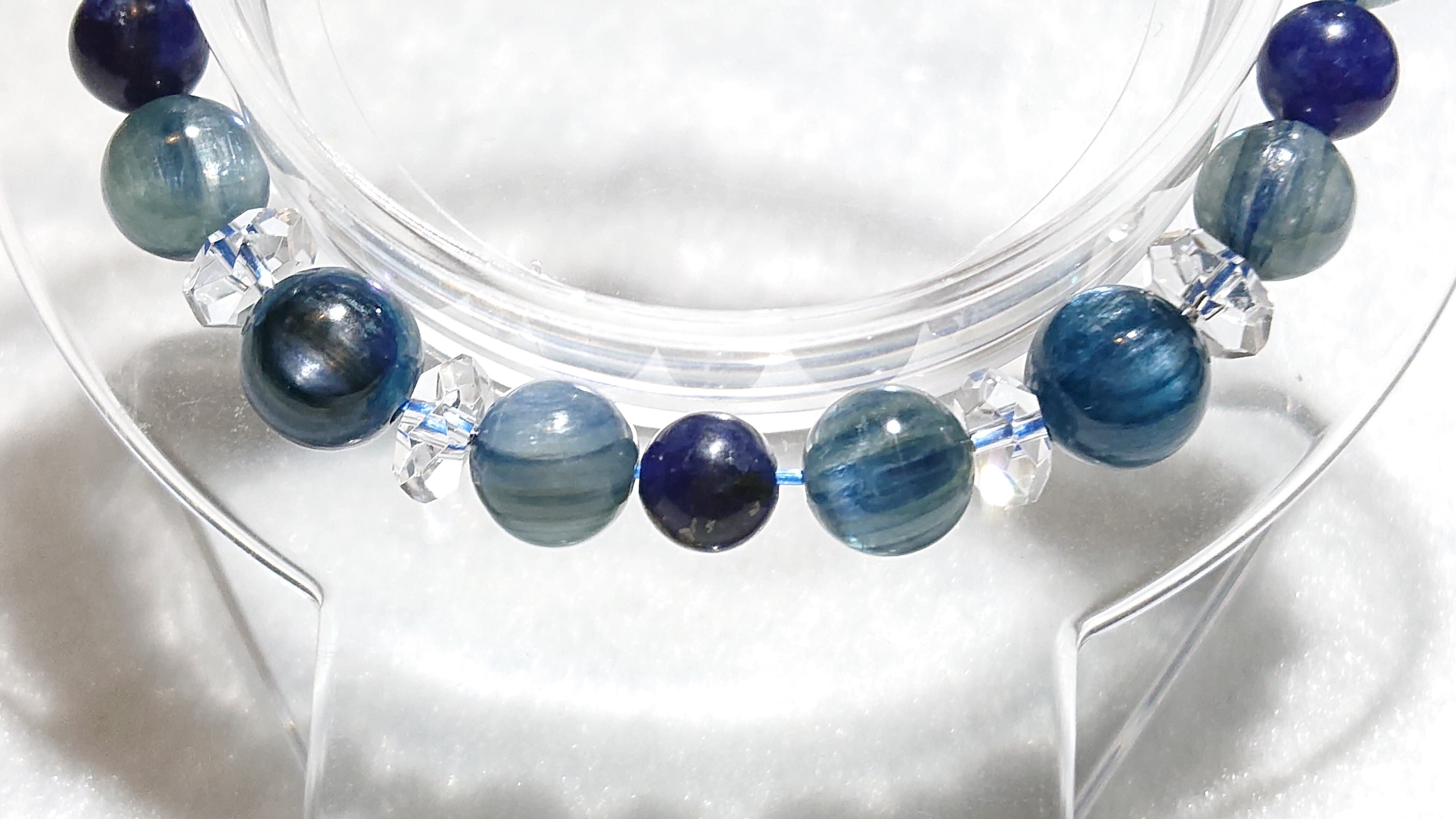 深い海のような青と爽やかな空のような2種類のカイヤナイトに、藍色のソーダライトを組み合わせました。