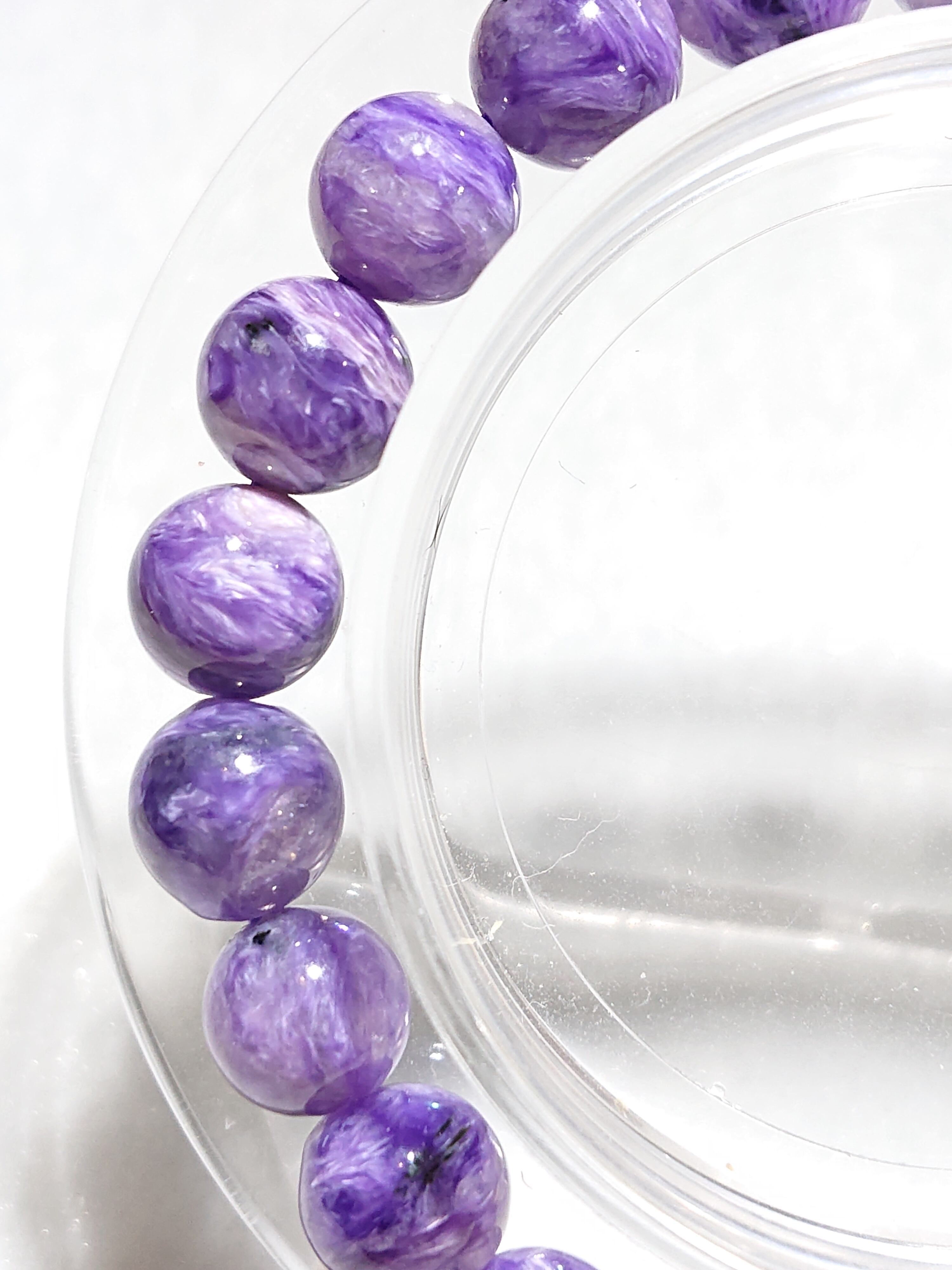 世界三大ヒーリングストーンの1つである『チャロアイト』に水晶の成分が混ざり合ってできた鉱物で、別名として『チャロアイトクォーツ』とも呼ばれます。