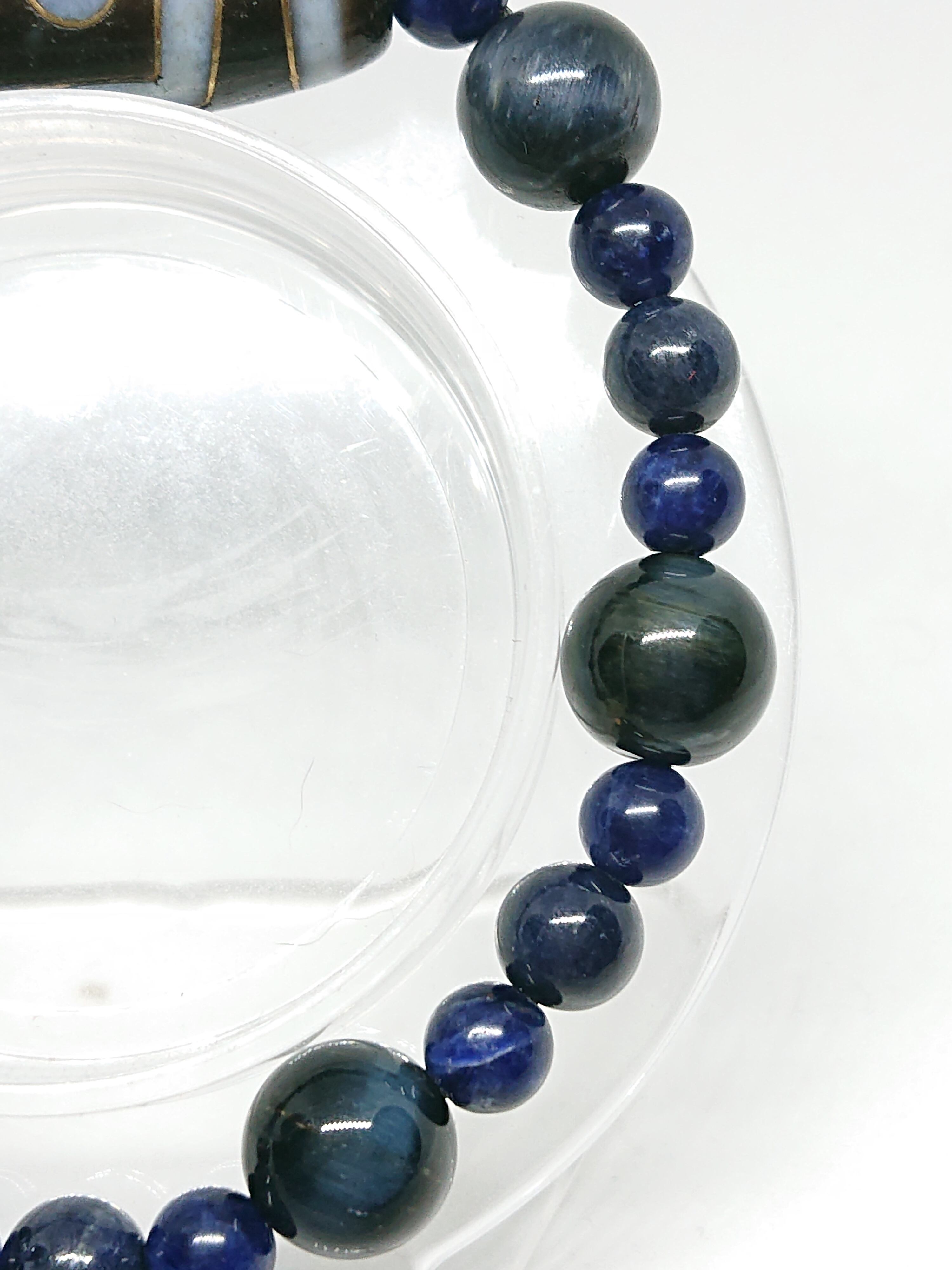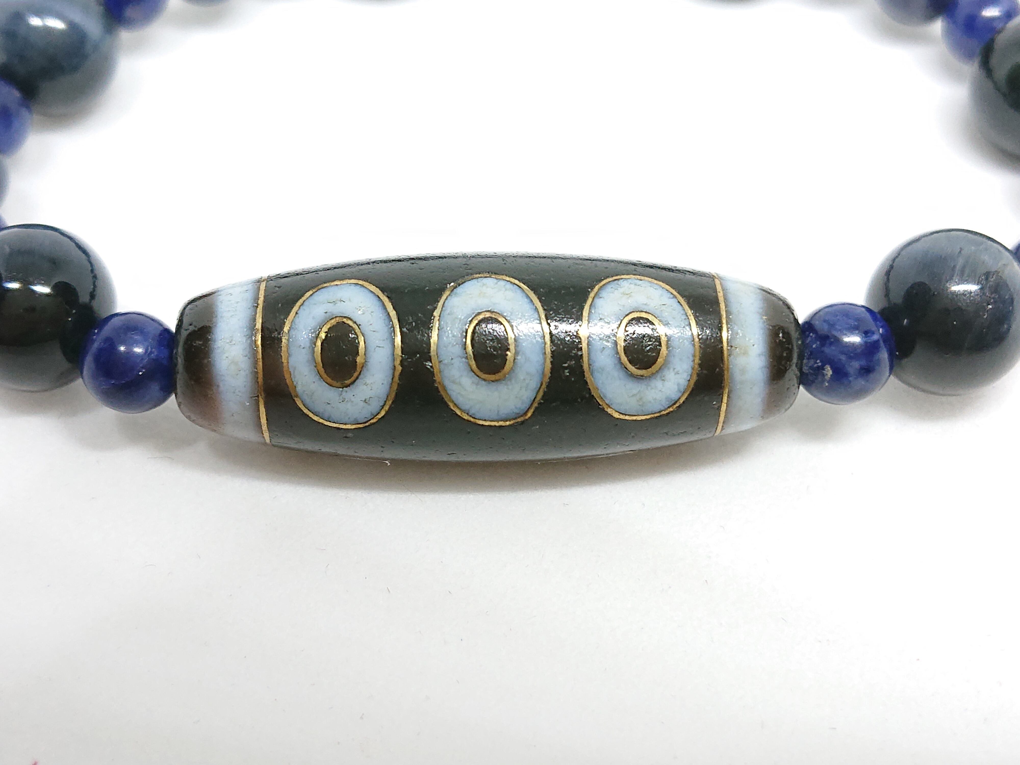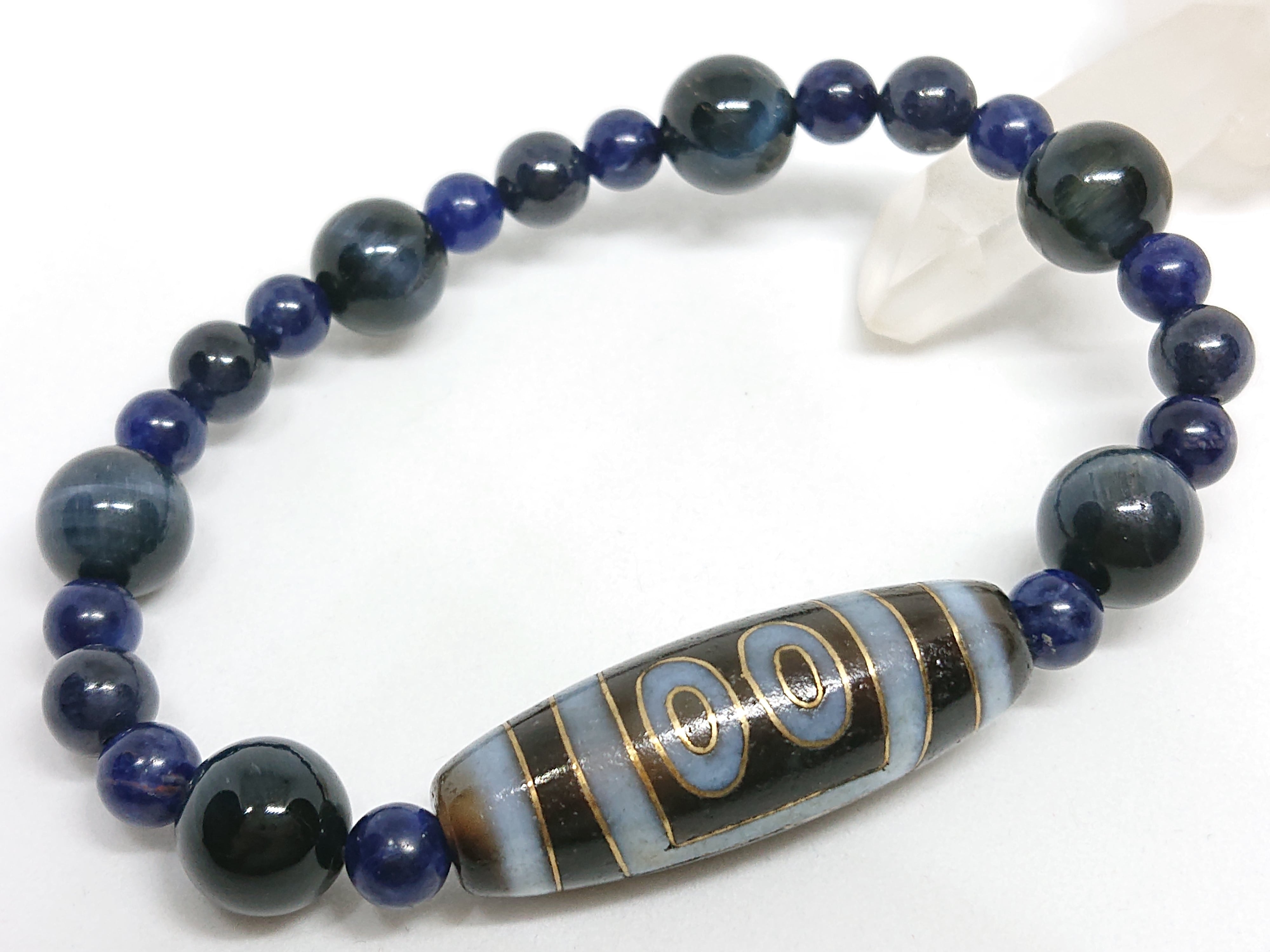 銀線天珠✨五眼天珠、ホークアイ(ブルータイガーアイ)、サファイア、ソーダライト