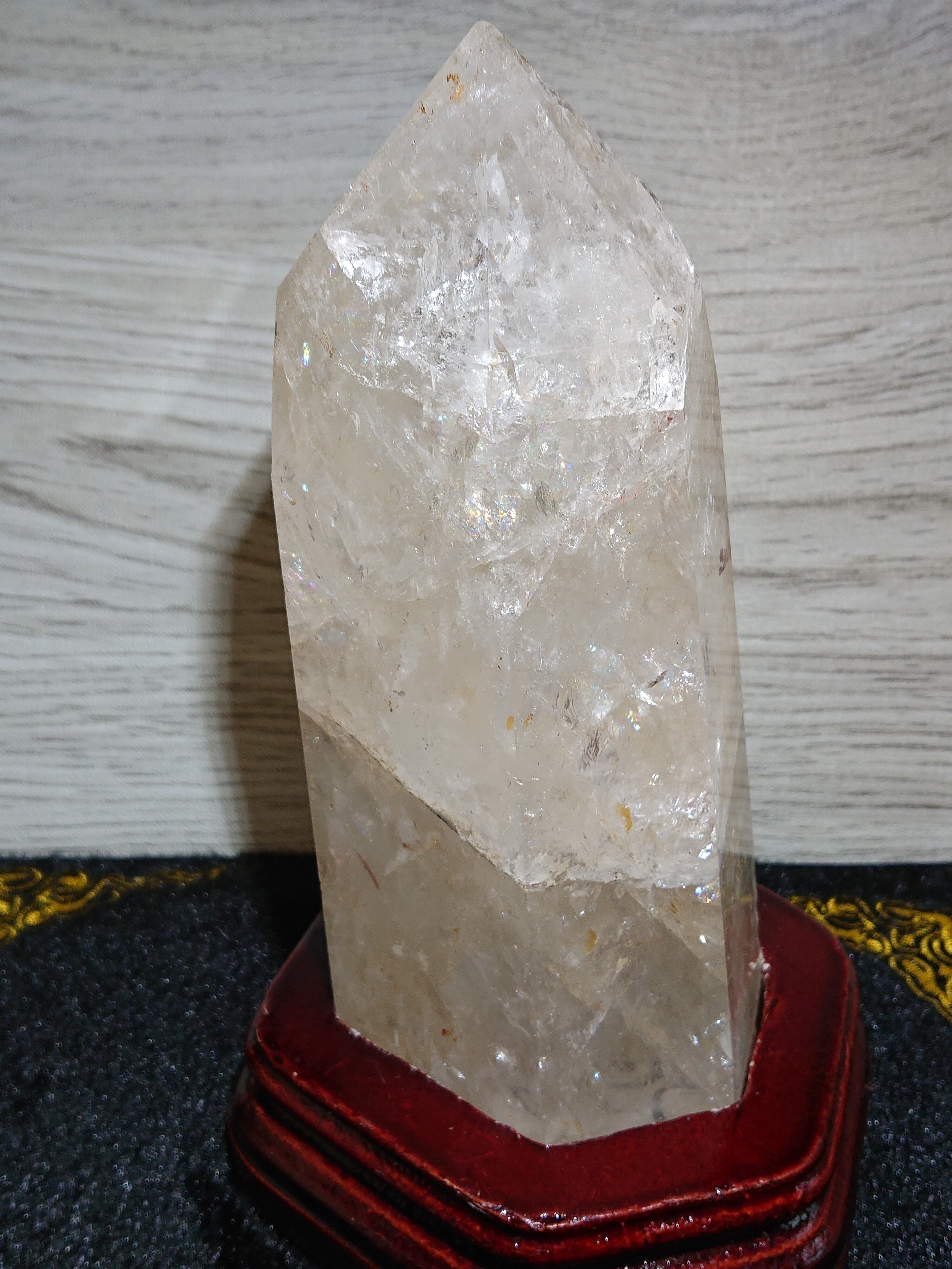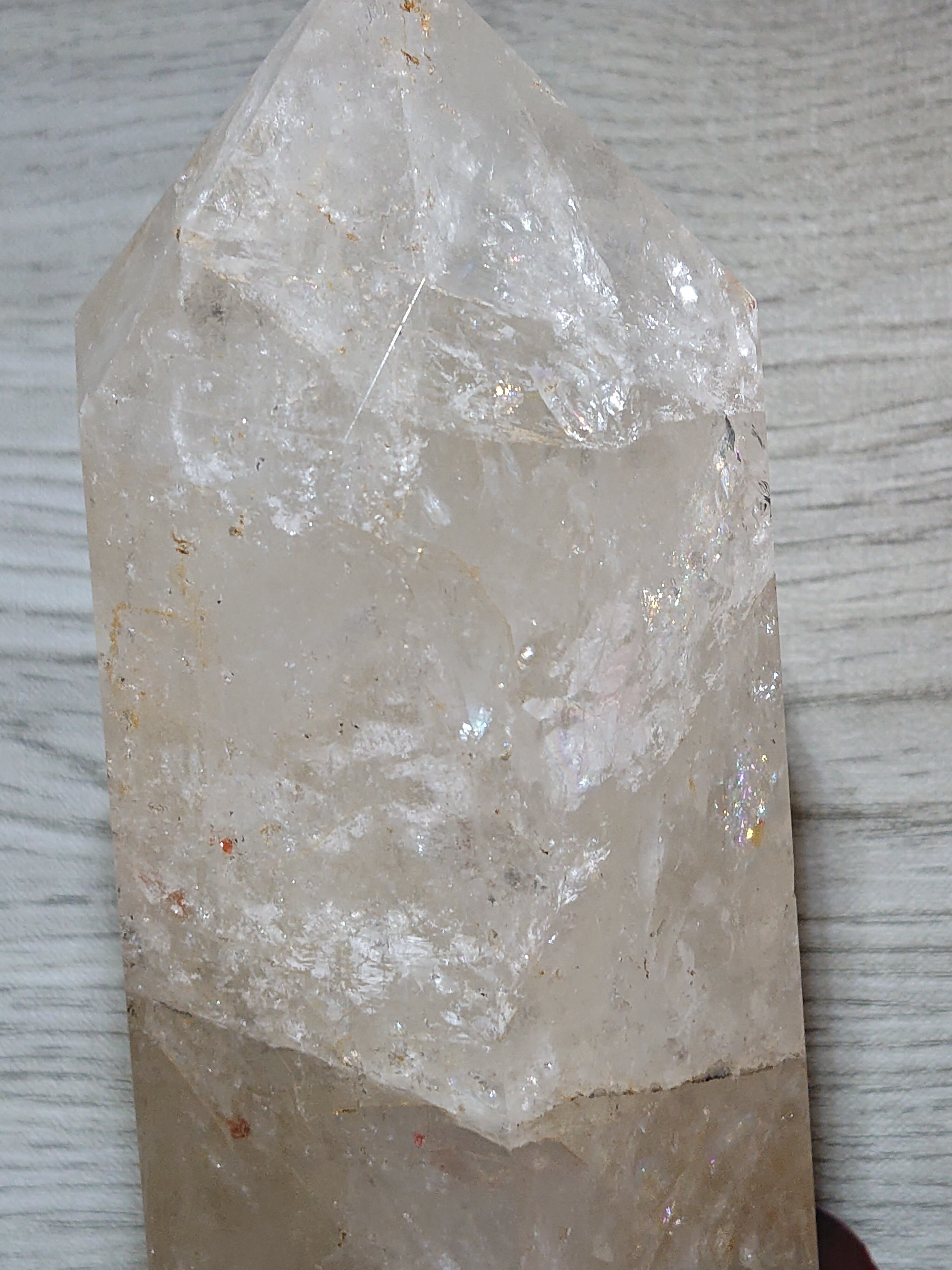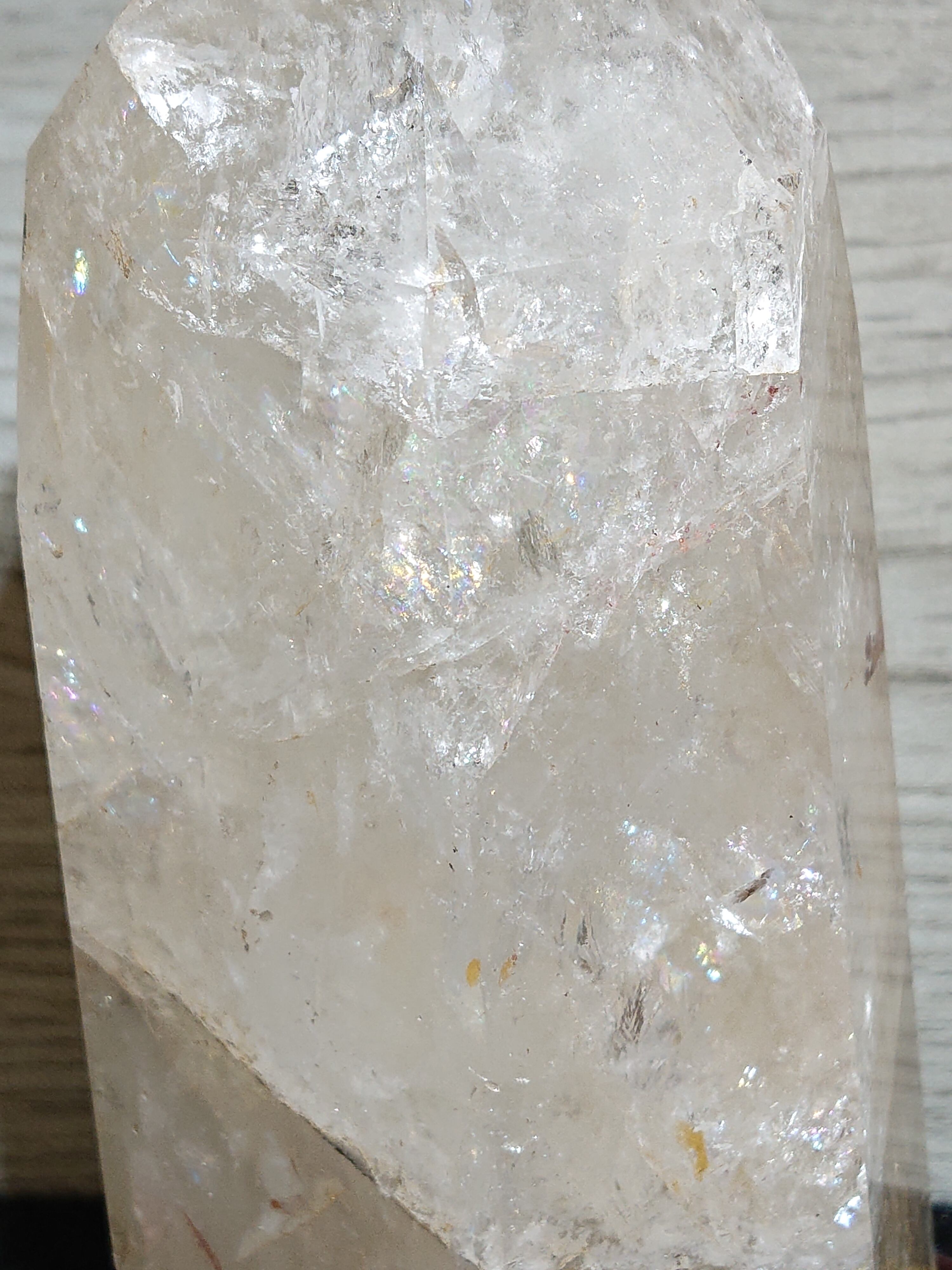 水晶の亀裂や歪みに光が当たると虹色が浮き出ます。