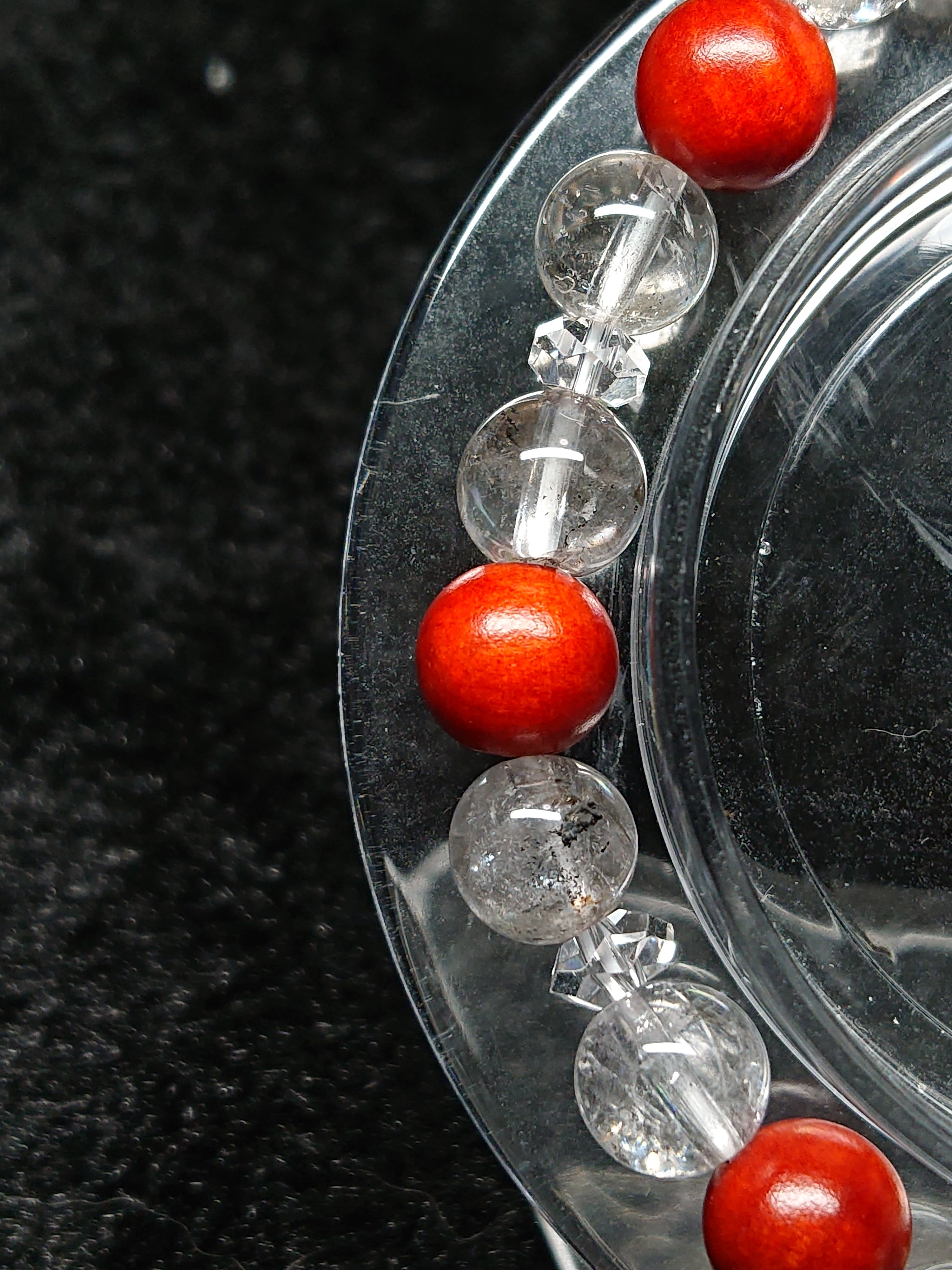 無限♾️の調和✨白・陰陽太極天珠(チベット老玉髄天珠)、ヒマラヤエレスチャルクォーツ、ブラッドドラゴンウッド(血龍の木)、六芒星(ヘキサグラム)