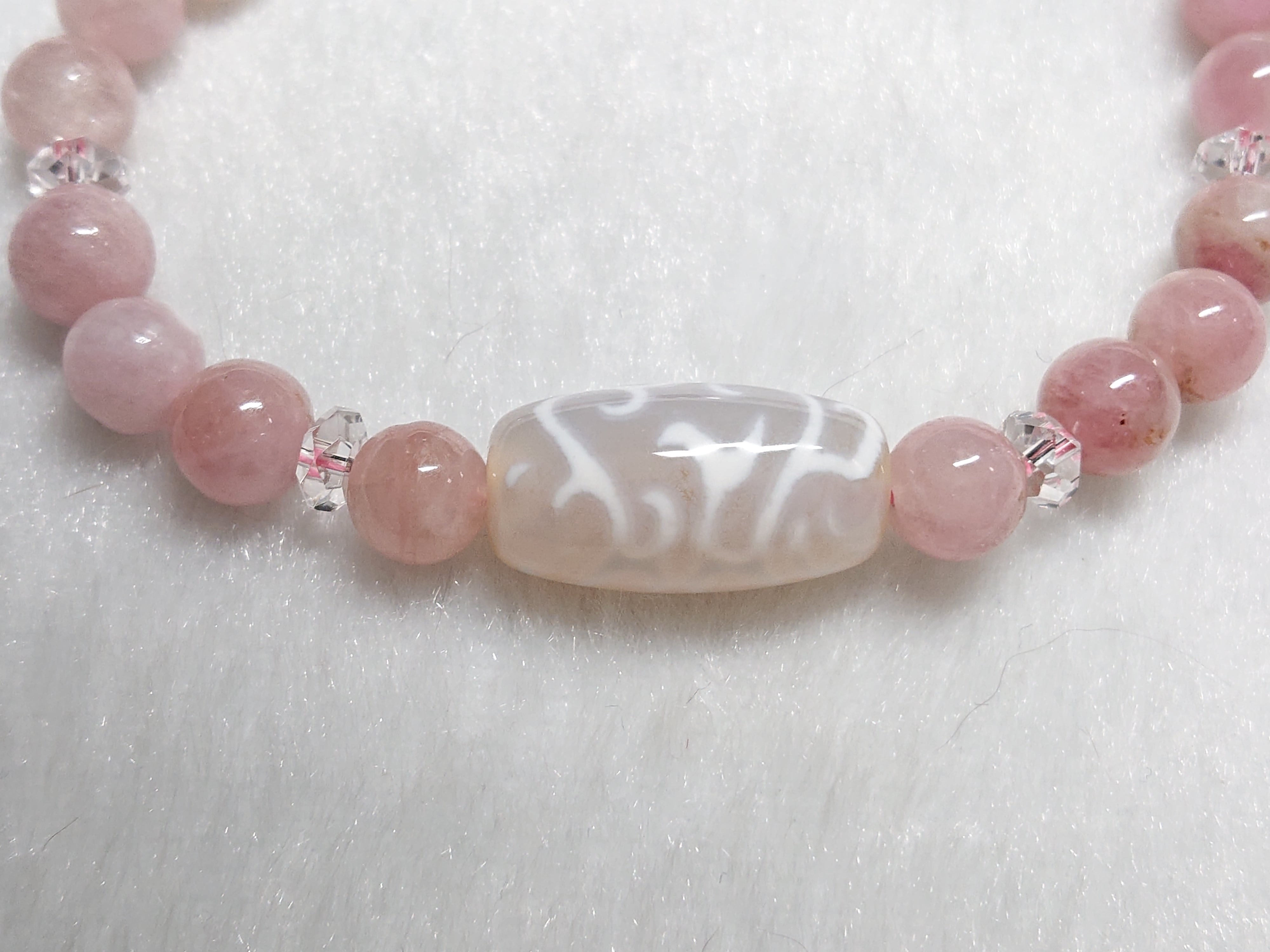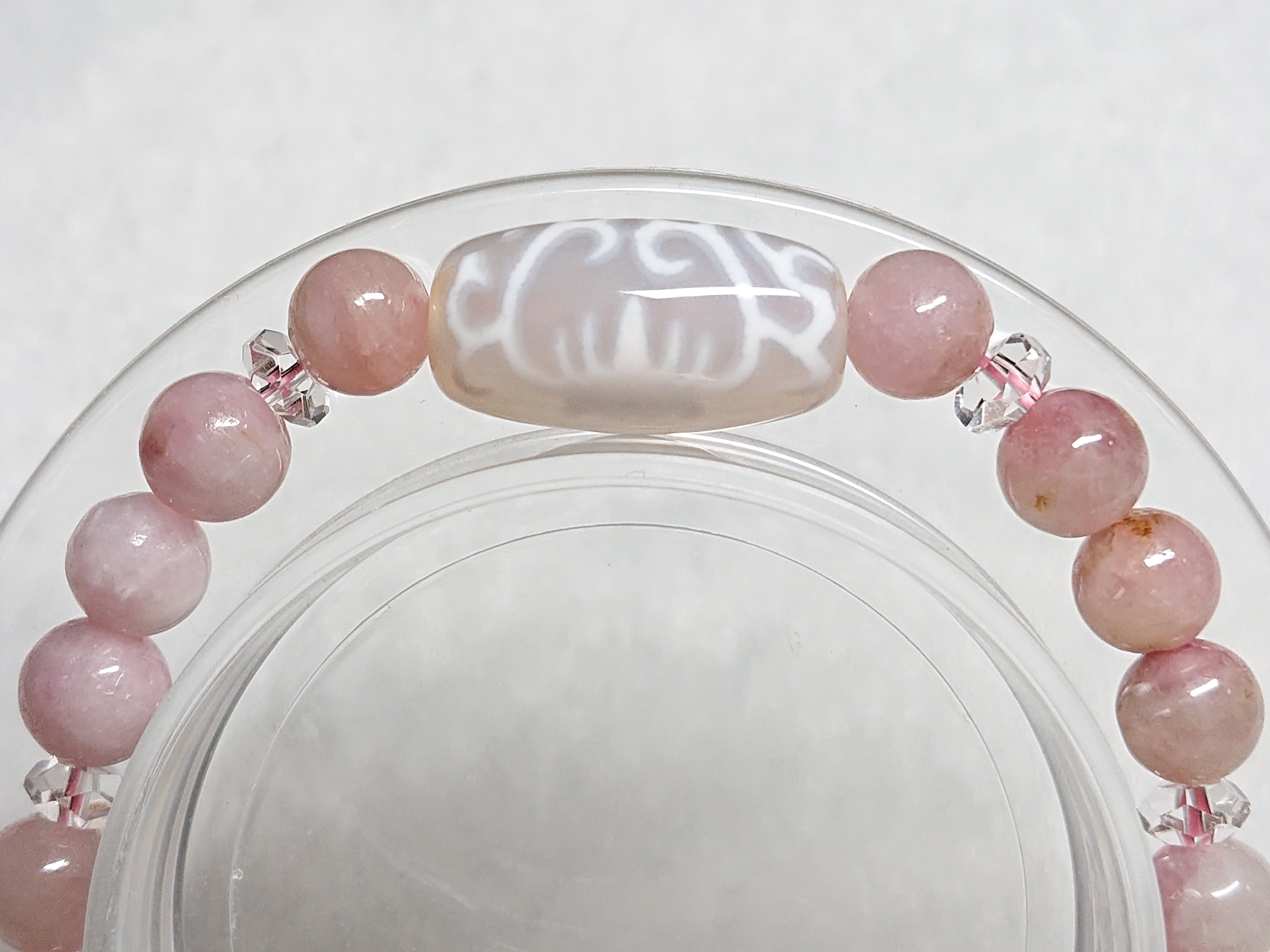 うっすら淡色に紅の蓮✨白・如意蓮花天珠(チベット老玉髄天珠)、アイスピンクトルマリン、シナバー(辰砂)
