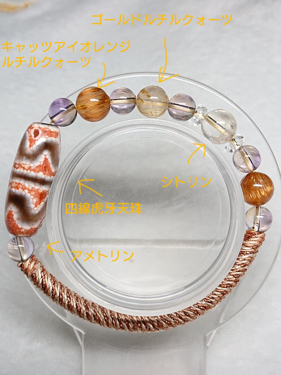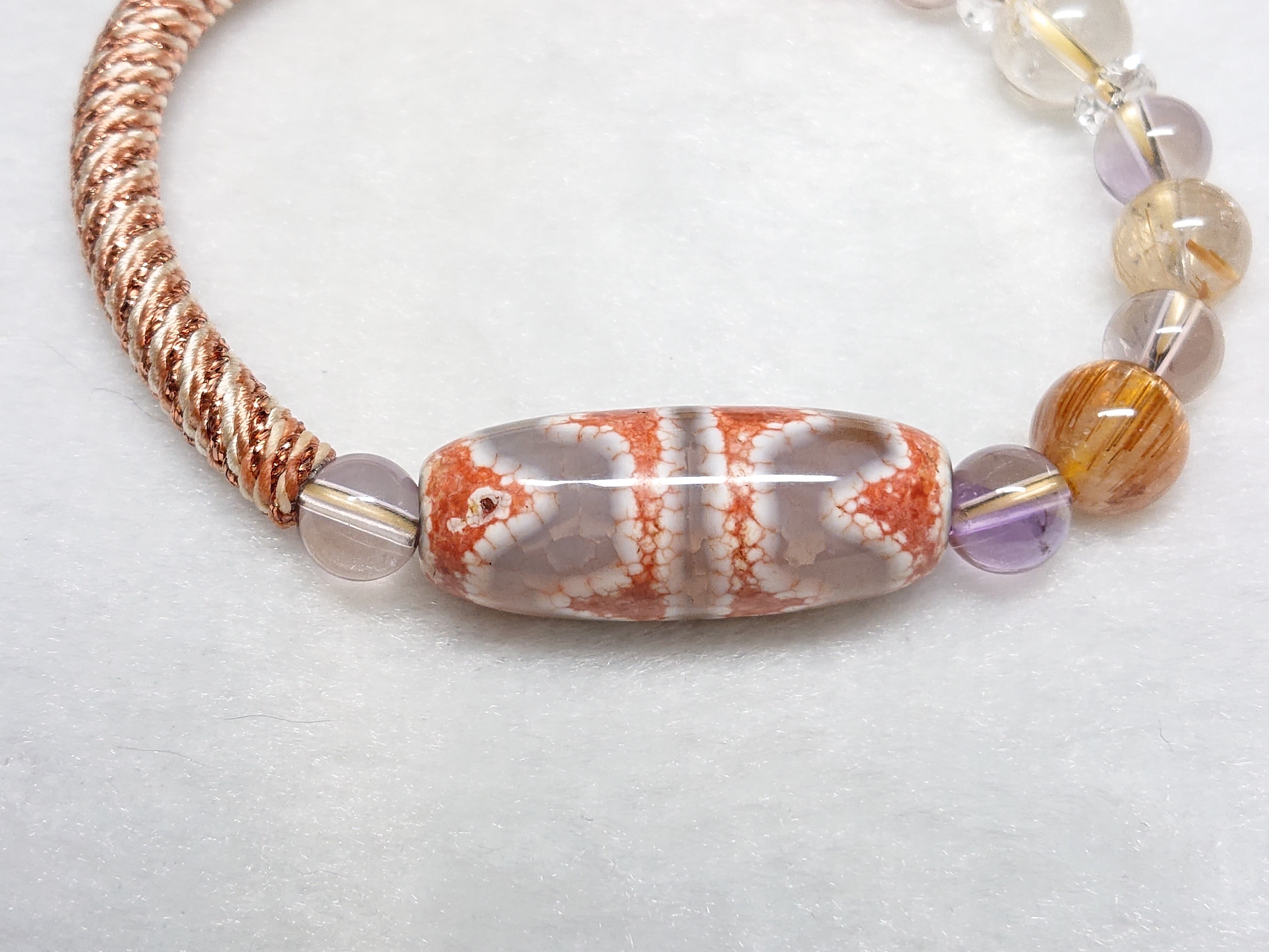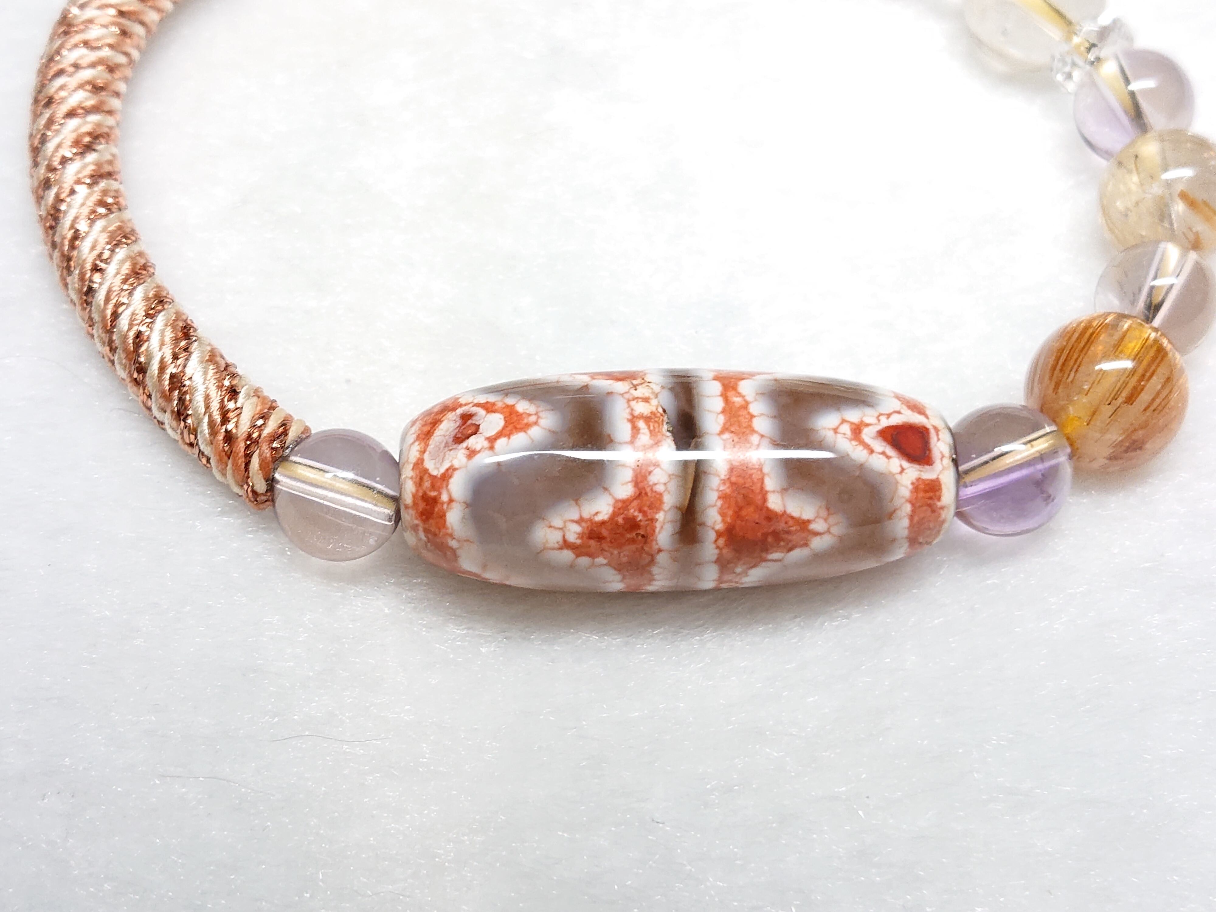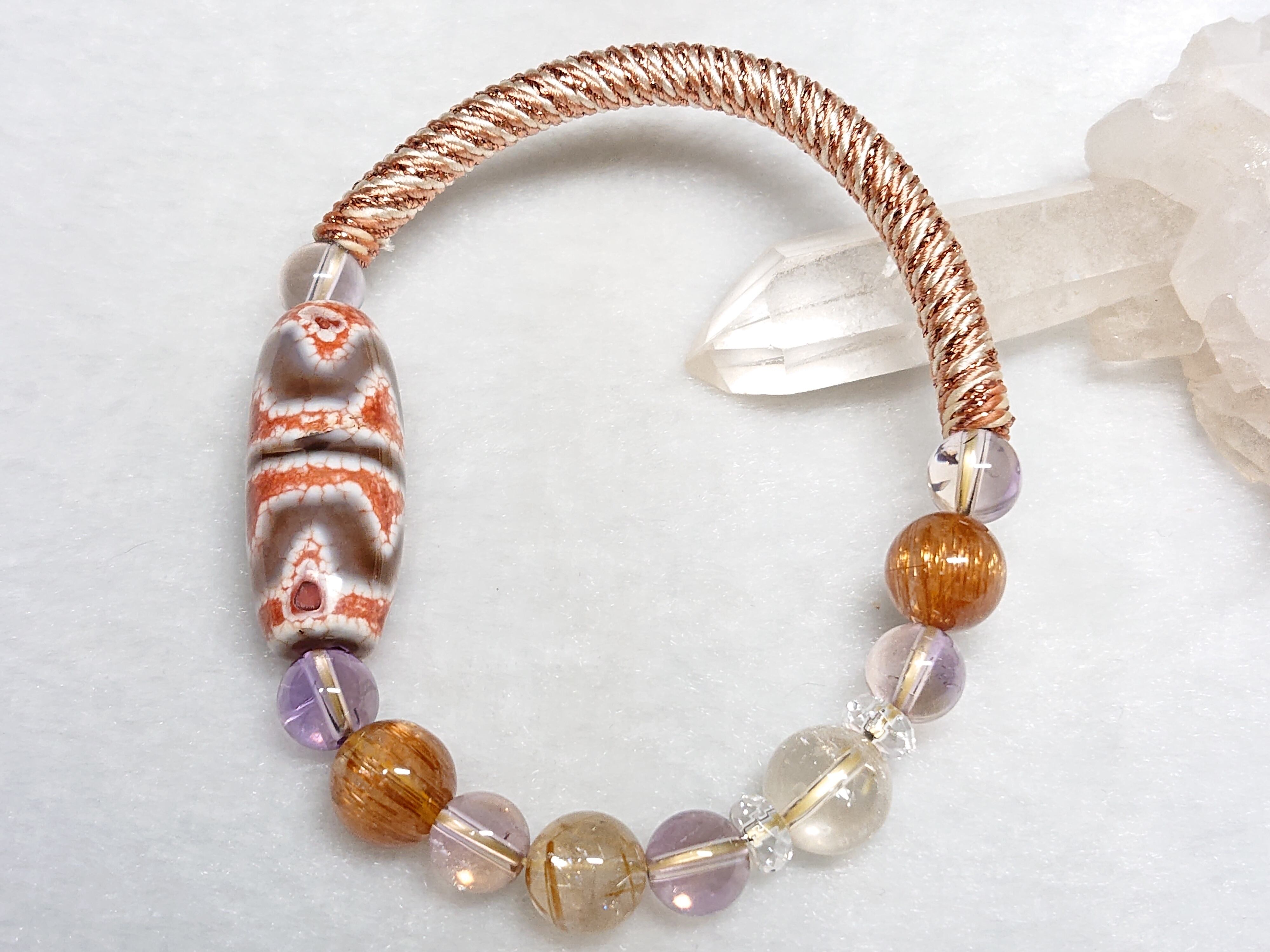 陽だまりの虎✨白・四線虎牙天珠(チベット老玉髄天珠) 龍紋入り、アメトリン(非加熱)、キャッツアイオレンジルチルクォーツ、ゴールドルチルクォーツ、シトリン(非加熱)、水晶(ボタン)