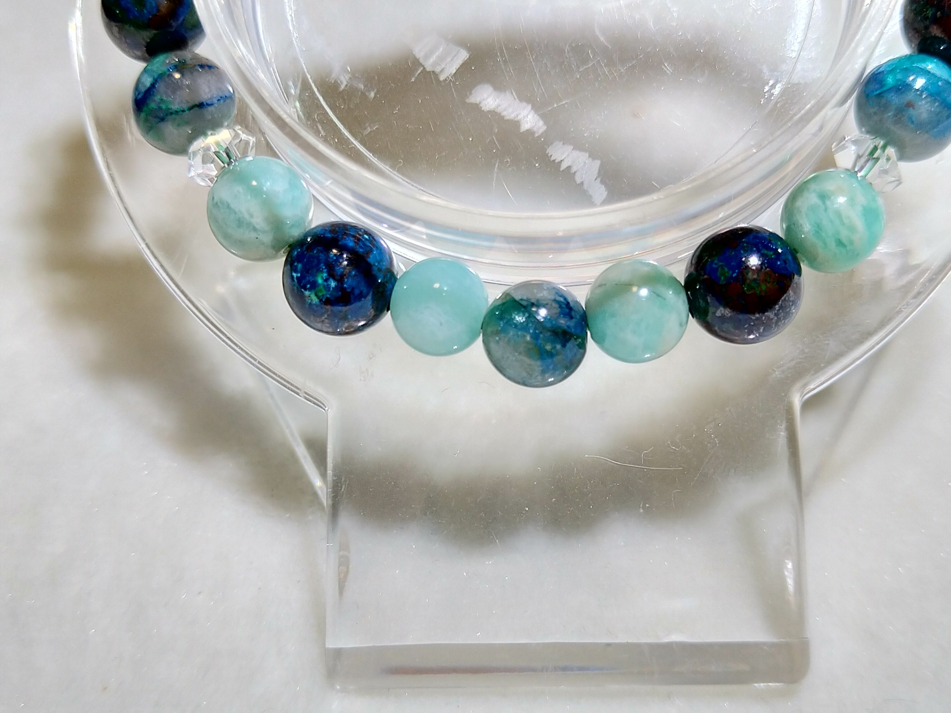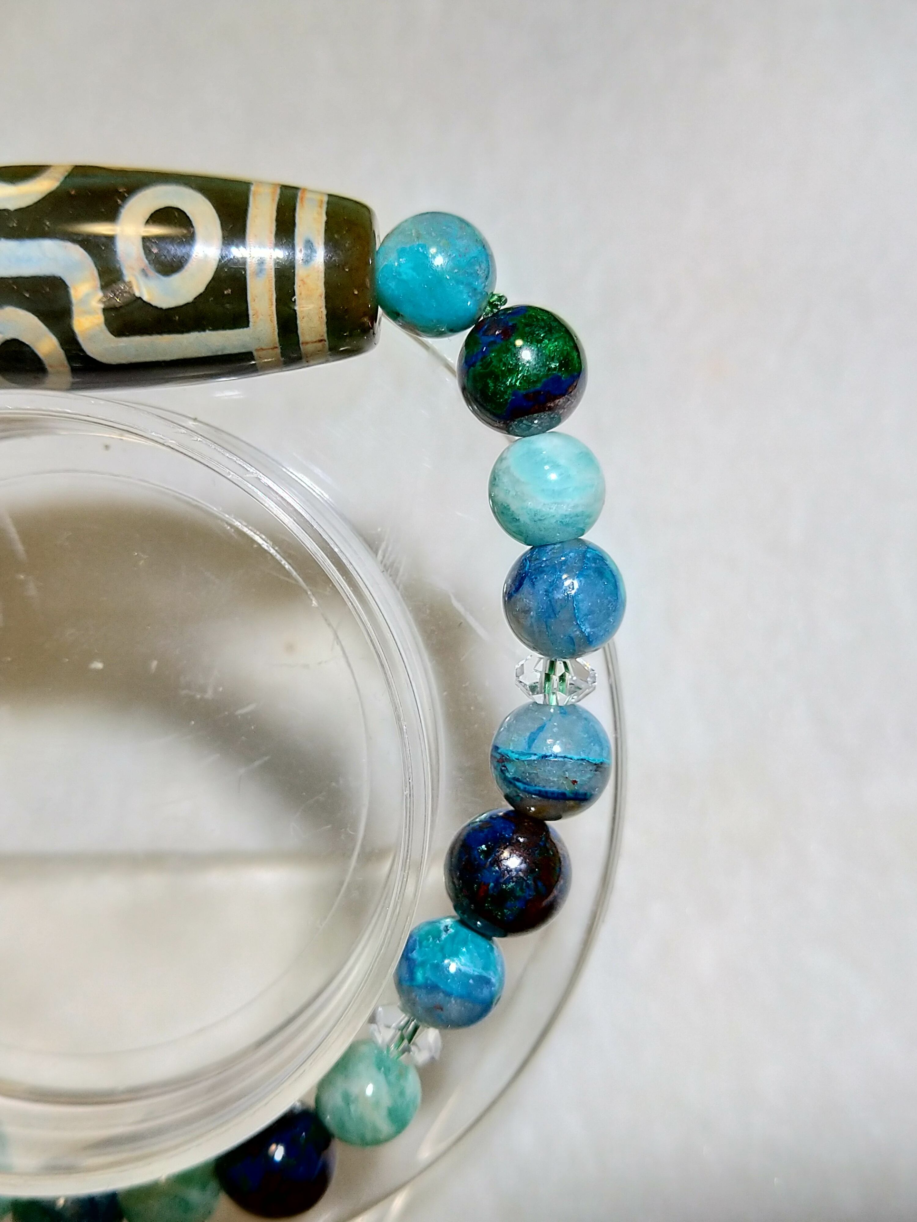 龍が住むという伝承池入り✨開運効果は通常の1000倍❗❓【右下がり九眼天珠】、クリソコラ、ジェムシリカ(クリソコラシリカ)、アマゾナイト、水晶(ボタン)