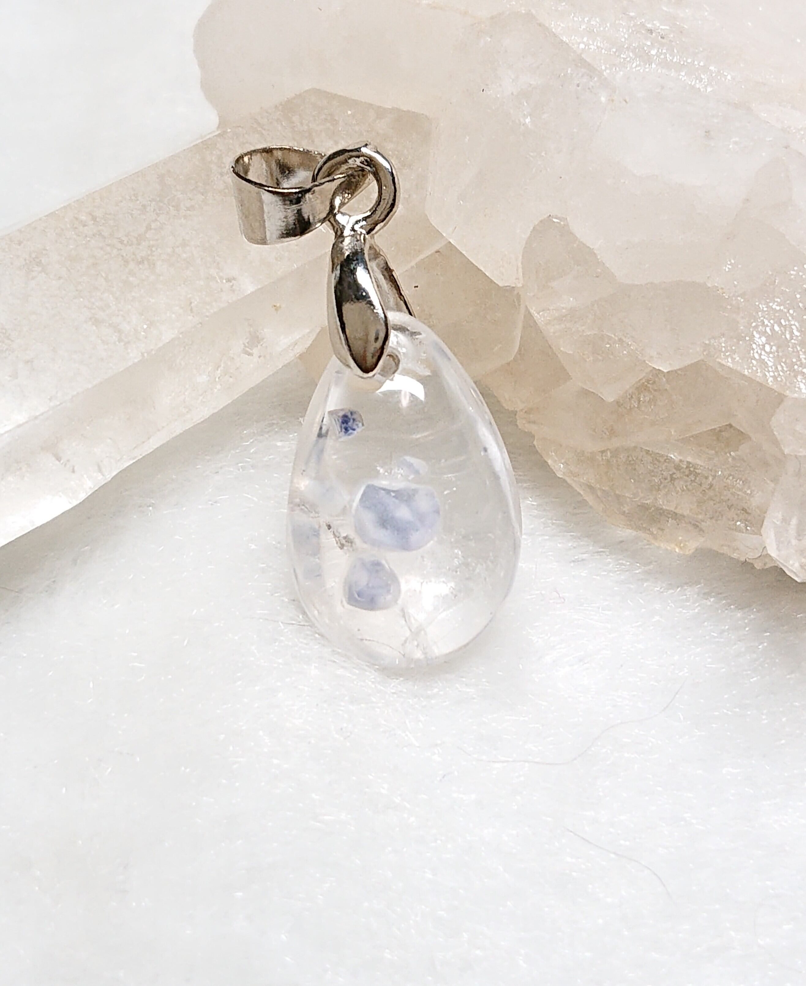 フローライトのペールブルーや紫紺の色に表わされるように、眉間部の第6チャクラ(サードアイ)と頭頂部の第7チャクラ(クラウンチャクラ)に対応し、水晶自体は第7チャクラのエネルギーと呼応していると言われているそうです。