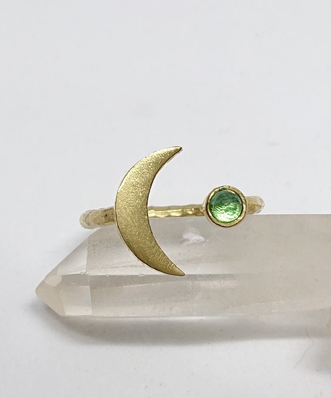 カボション型の可愛いエメラルドと可愛い三日月のリングです。