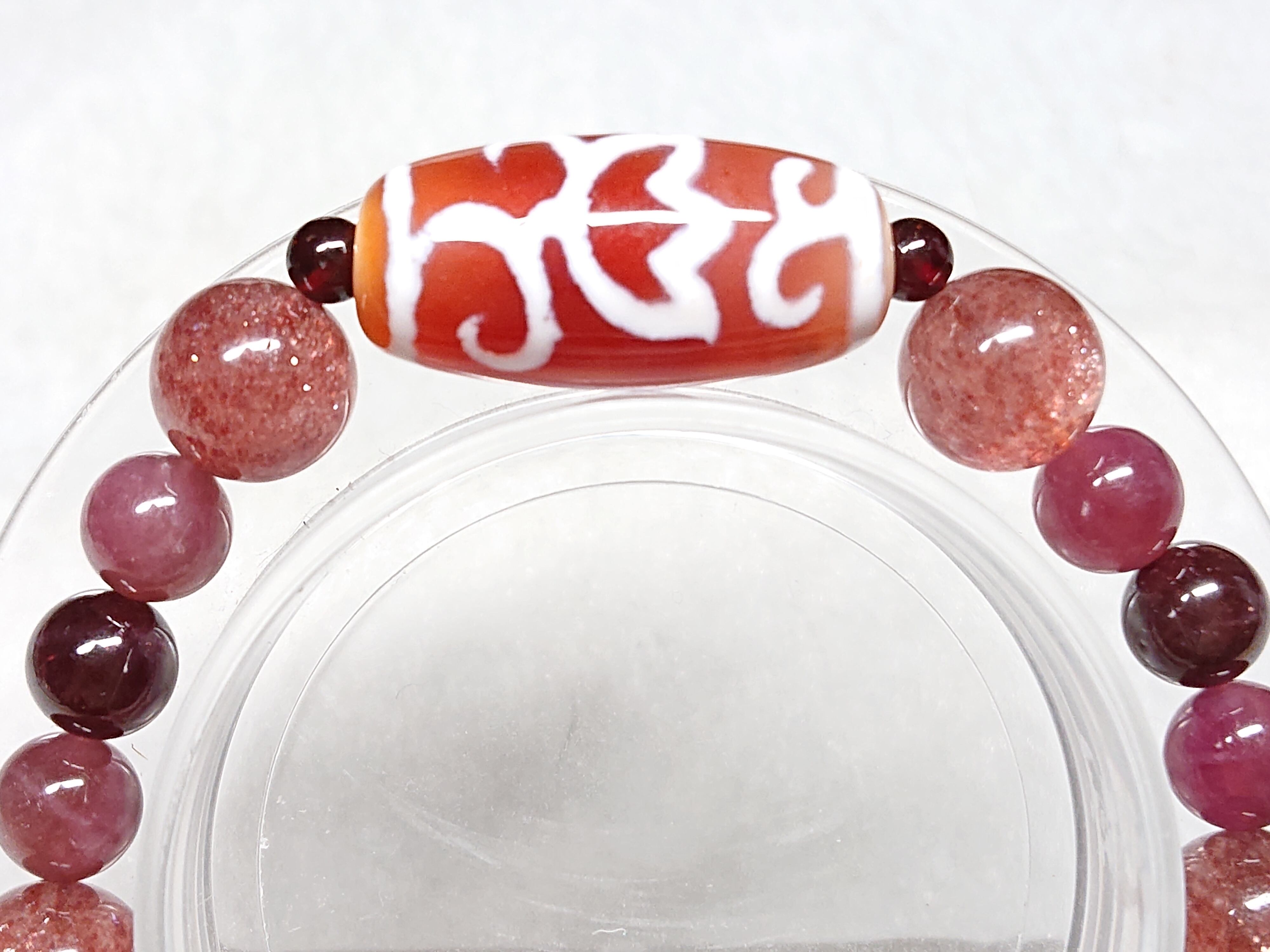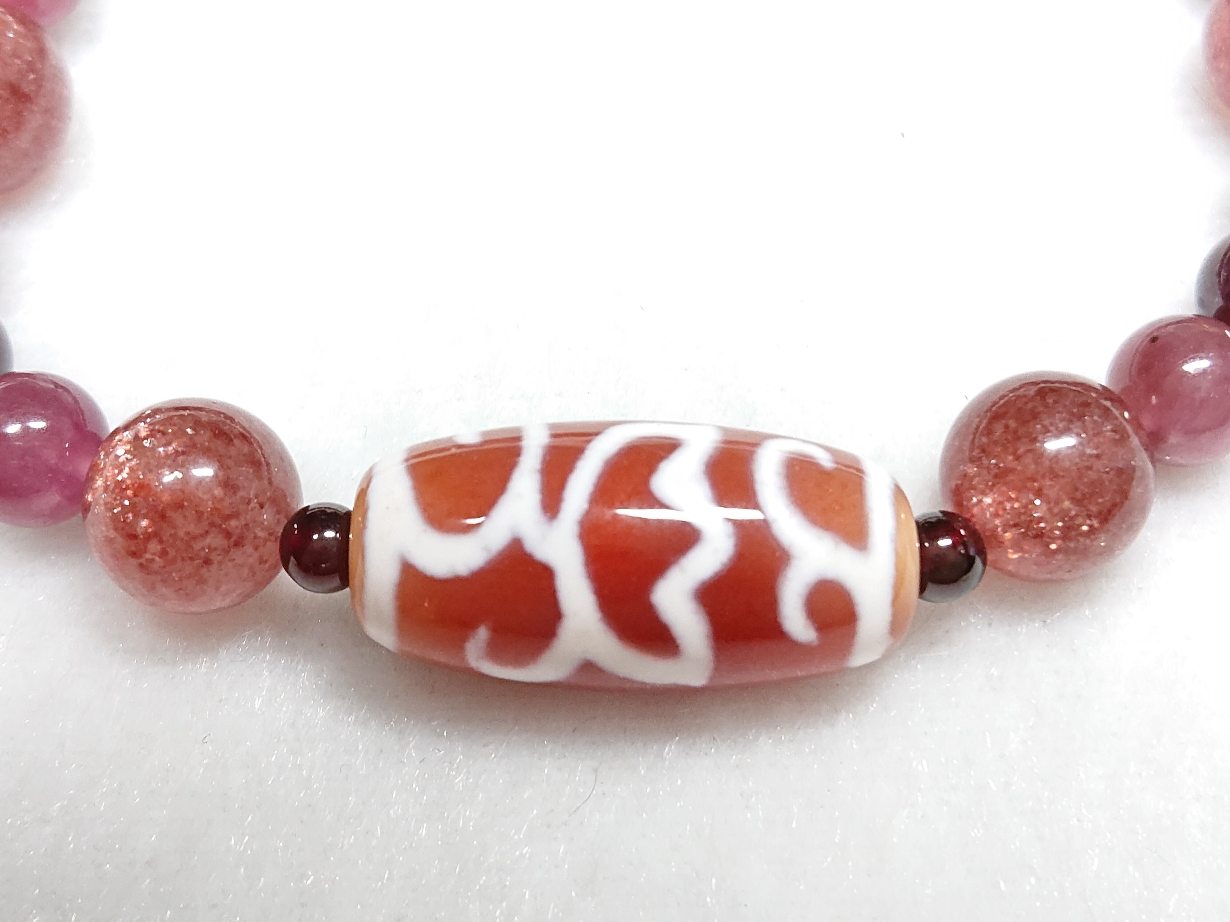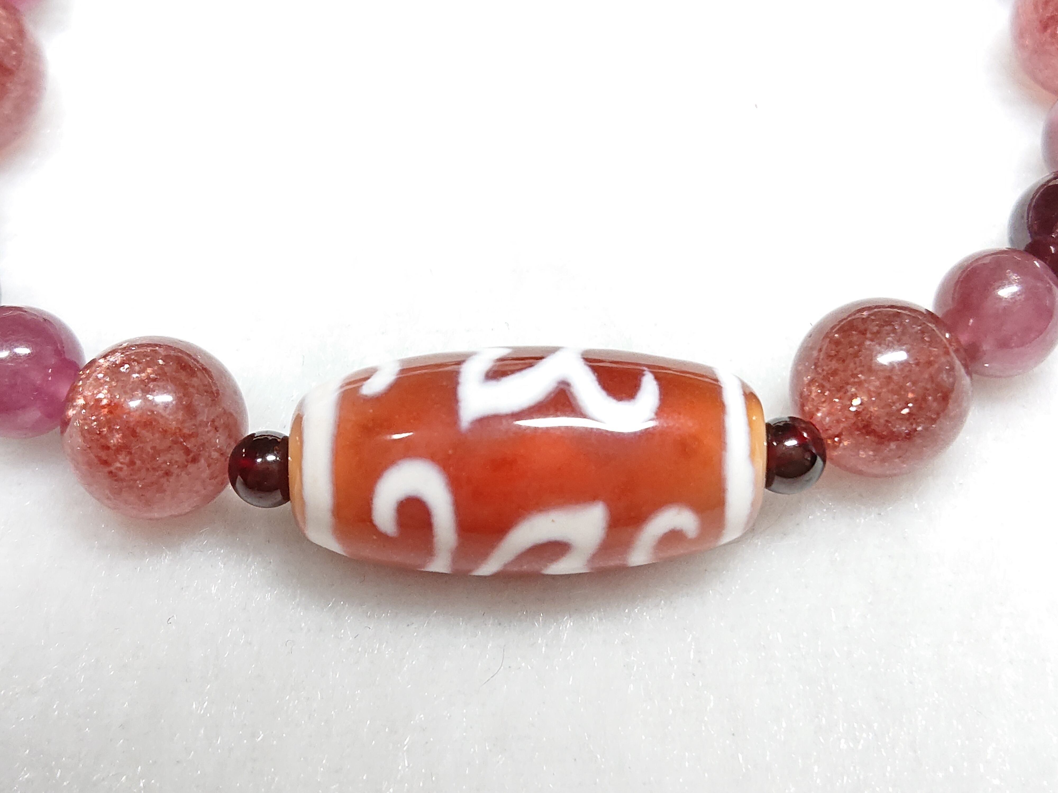 紅色蓮花(エネルギーチャージ)✨紅・水蓮花天珠(チベット老玉髄天珠)、ロードライトガーネット、ストロベリークォーツ、ピンクトルマリン