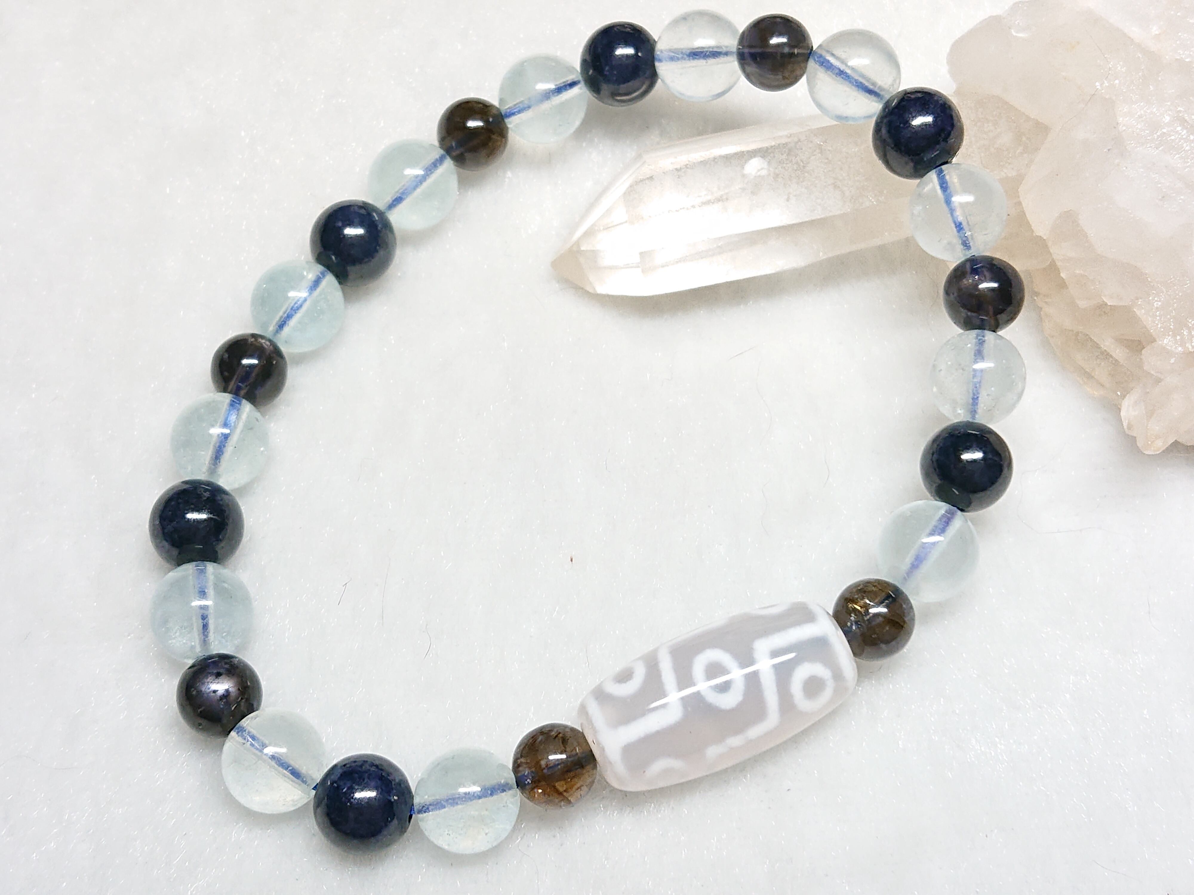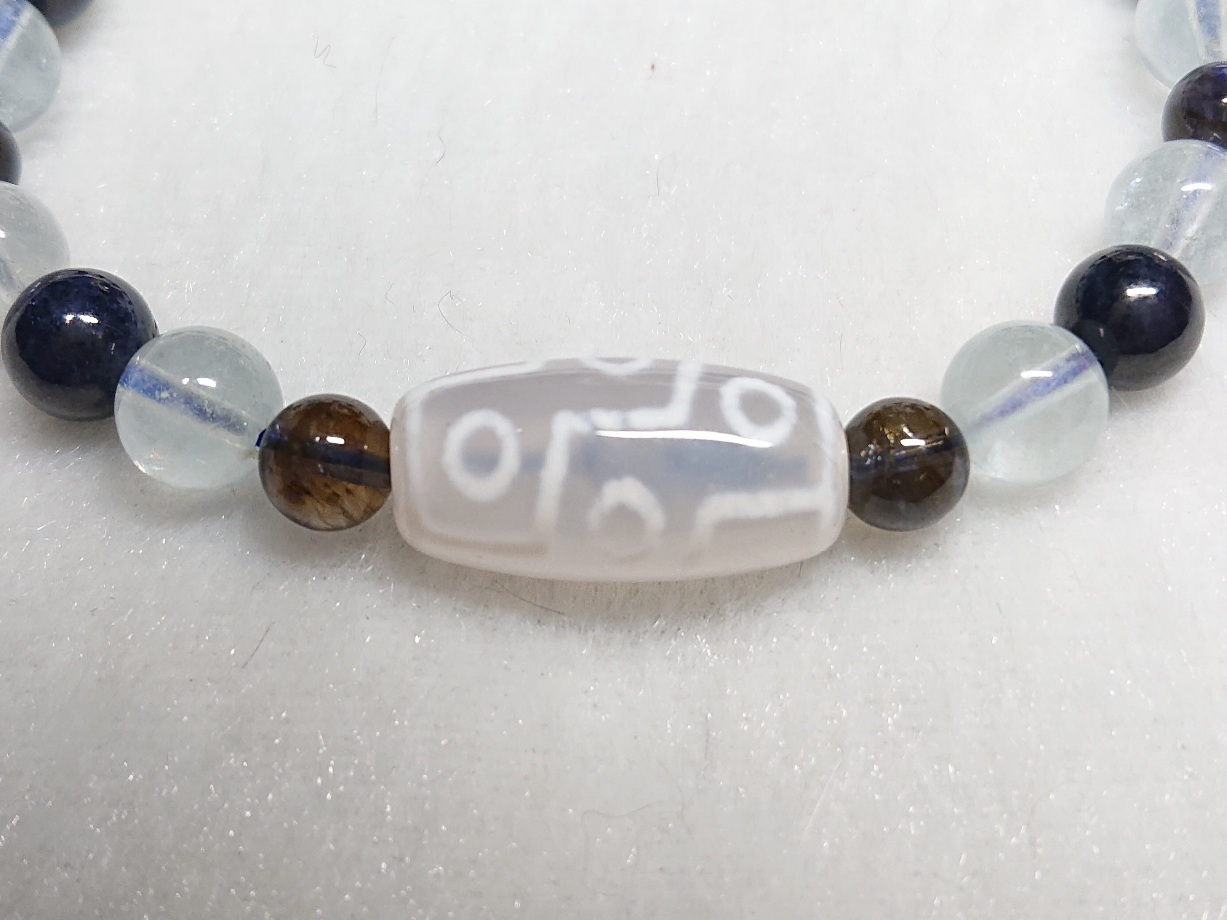 目標への道標に✨白・九眼天珠(チベット老玉髄天珠)、サファイア、アクアマリン、スターアイオライト