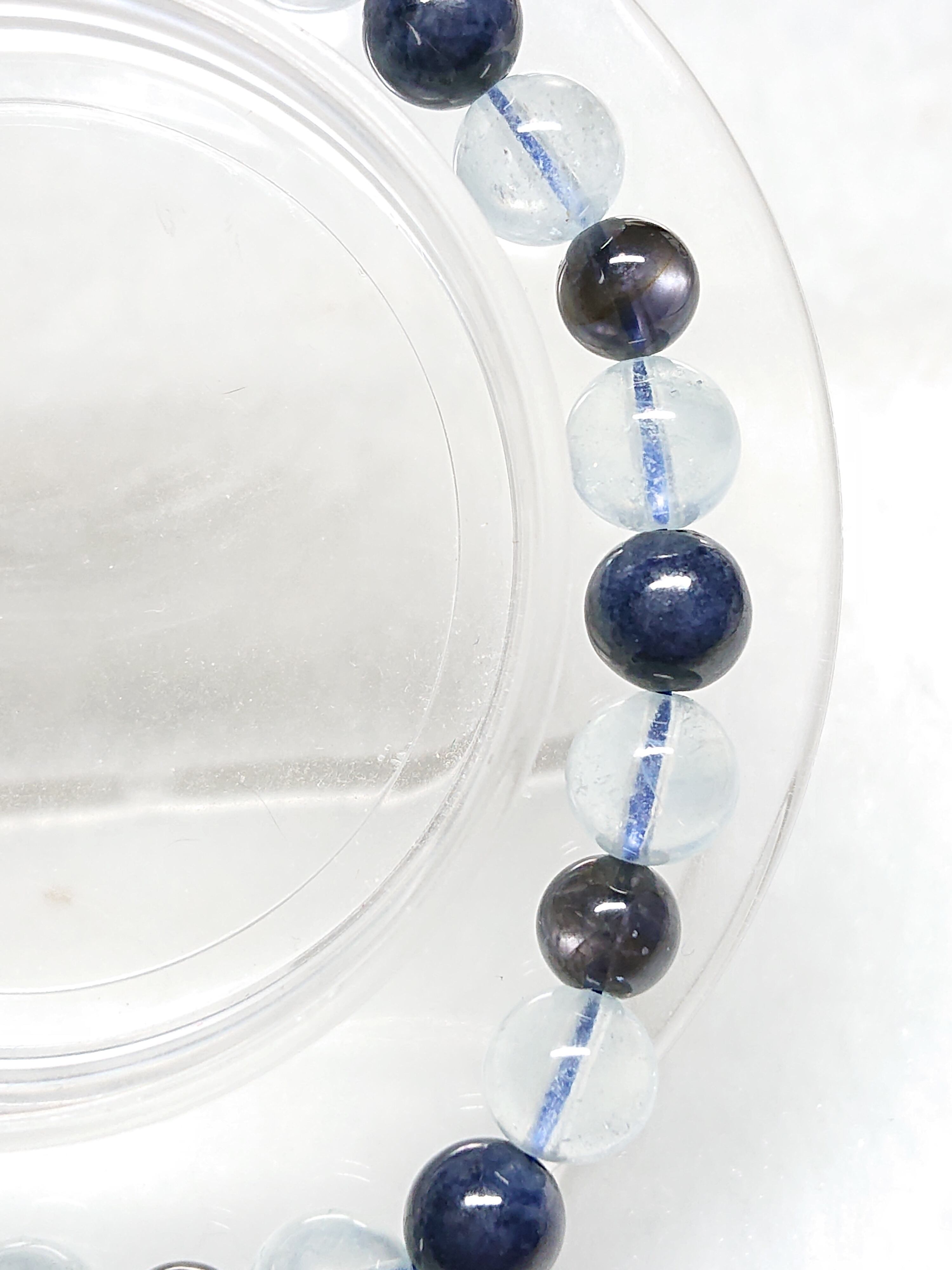 宝石にも使用されるサファイア、アクアマリン、スターアイオライトを贅沢に使用しています。