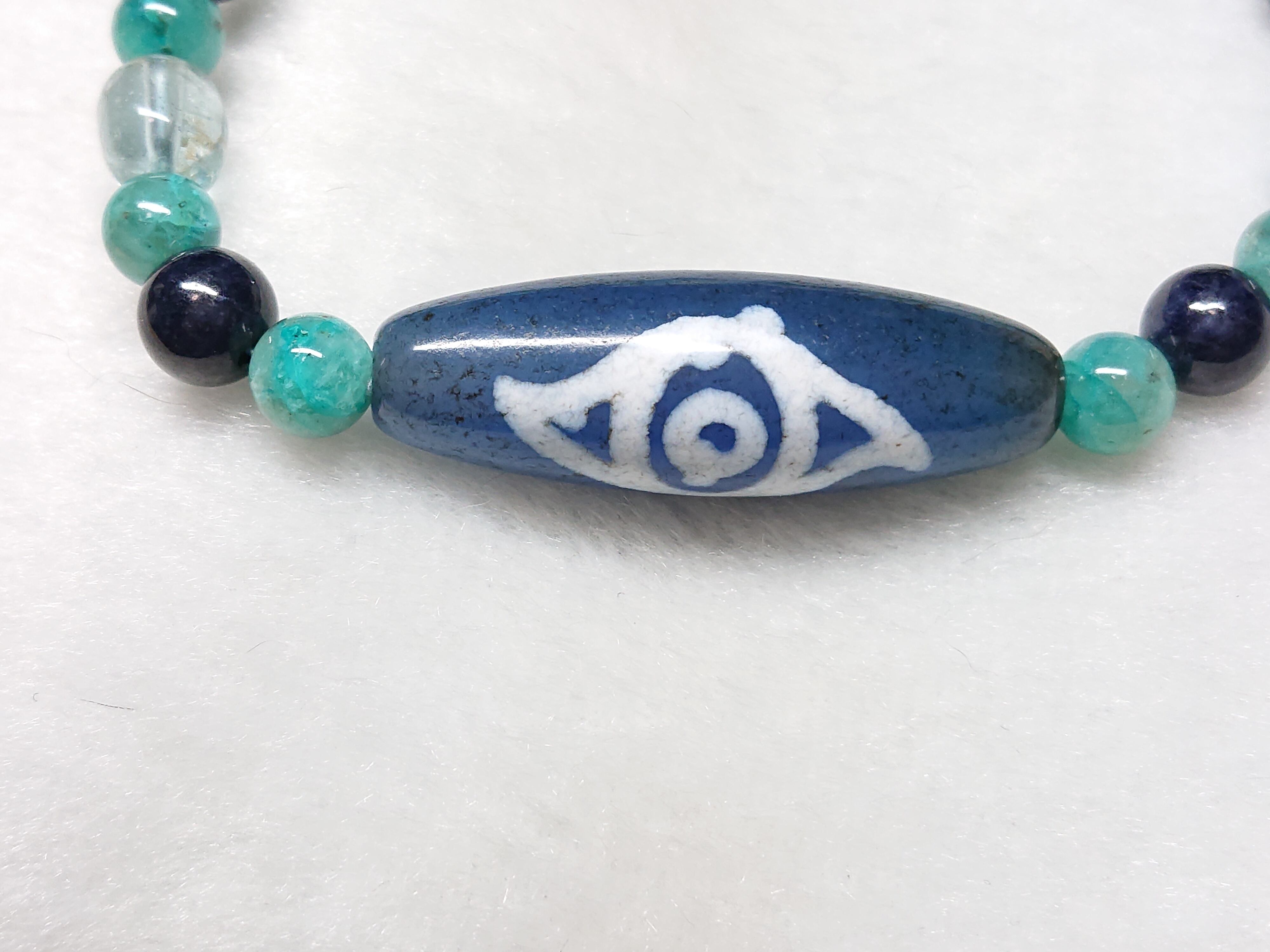 蒼き鳳凰(富貴吉祥)✨青・鳳凰眼天珠(チベット老玉髄天珠)、サファイア、ブルートパーズ、ジェムシリカ