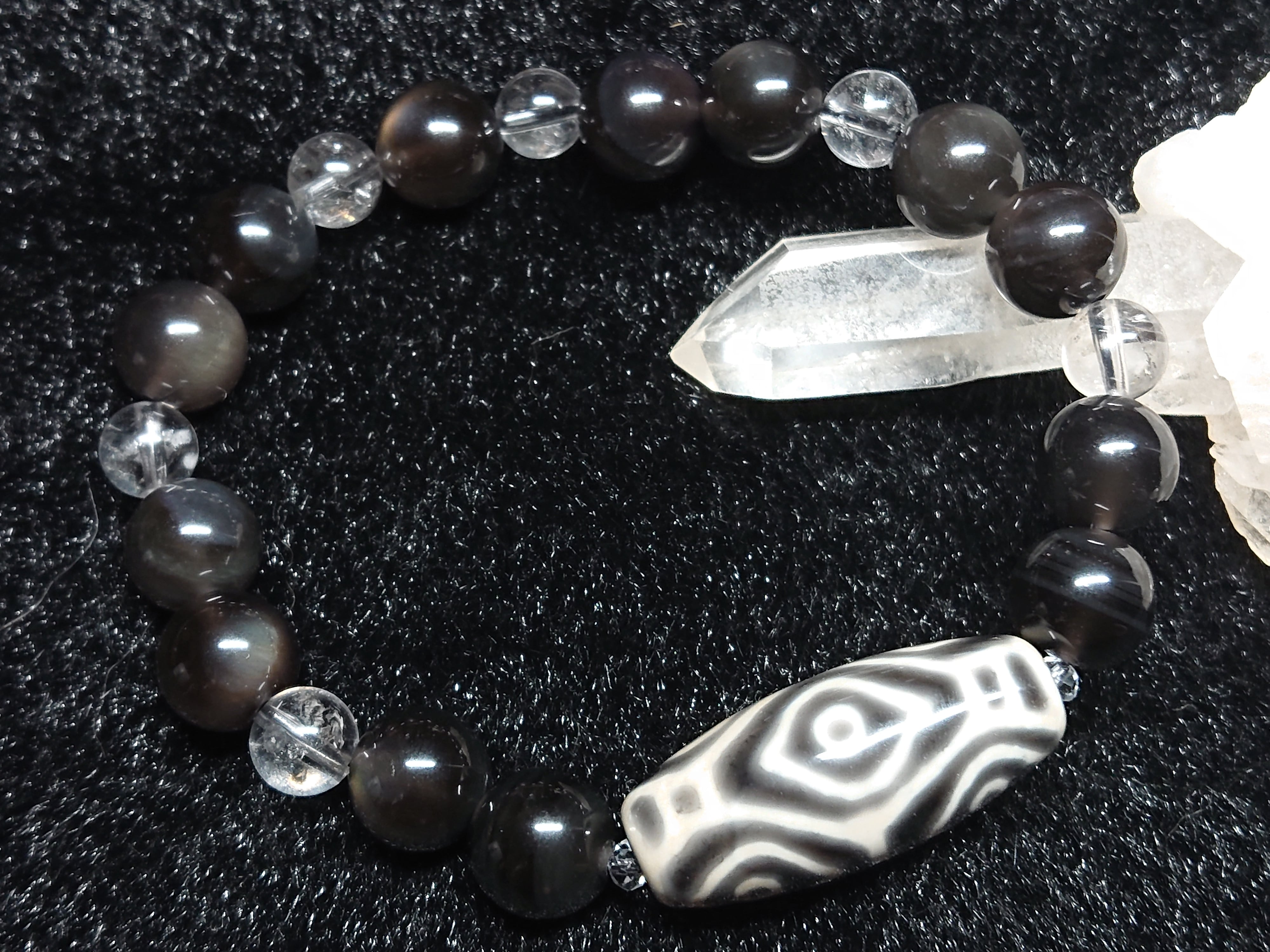 氷点✨龍眼天珠、アイスオブシディアン、ヒマラヤエレスチャルクォーツ