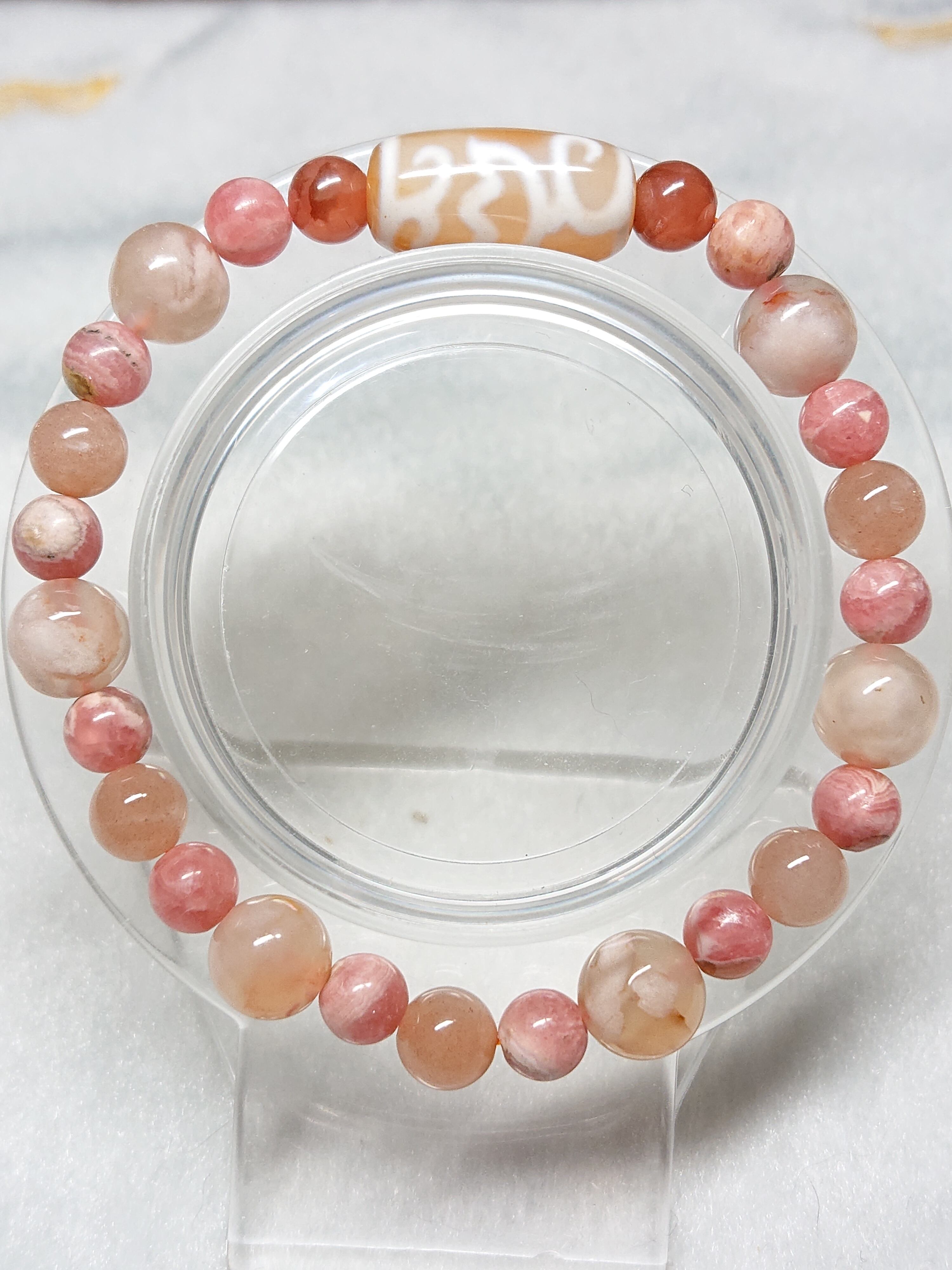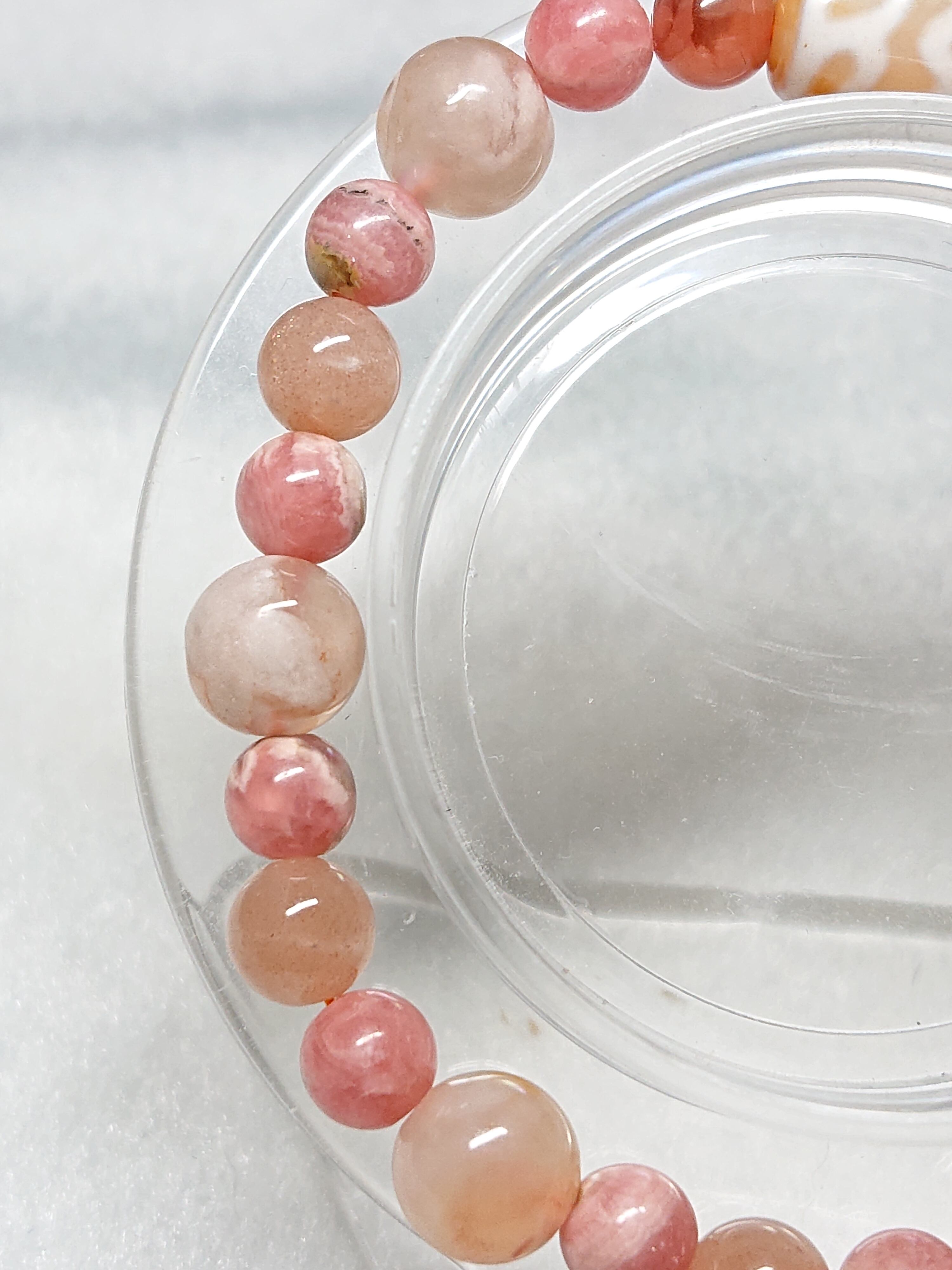 橙・水蓮花天珠(チベット老玉髄天珠)、インカローズ(ロードクロサイト)、アイスインカローズ、オレンジムーンストーン、桜瑪瑙(チェリーブロッサムアゲート)