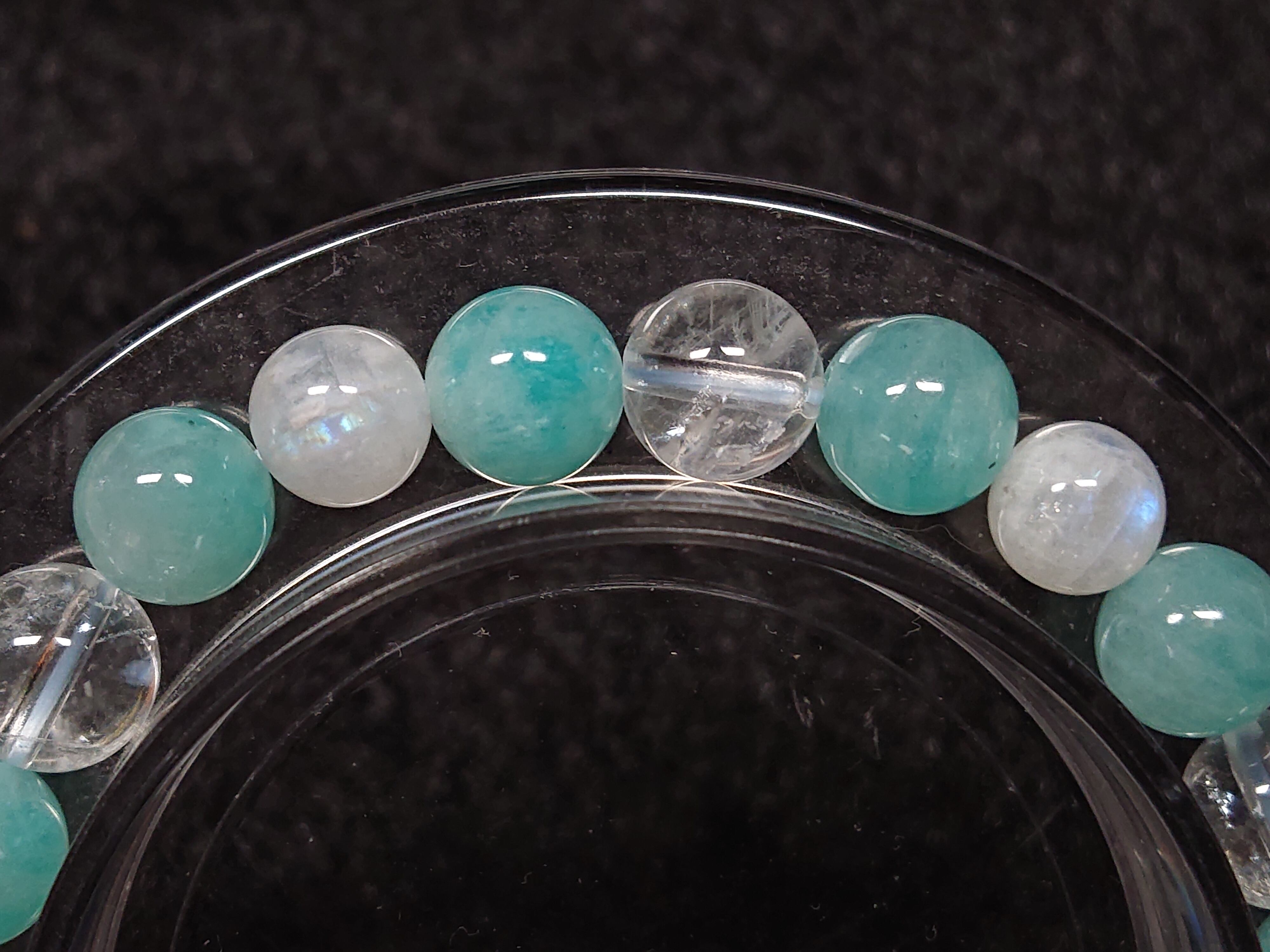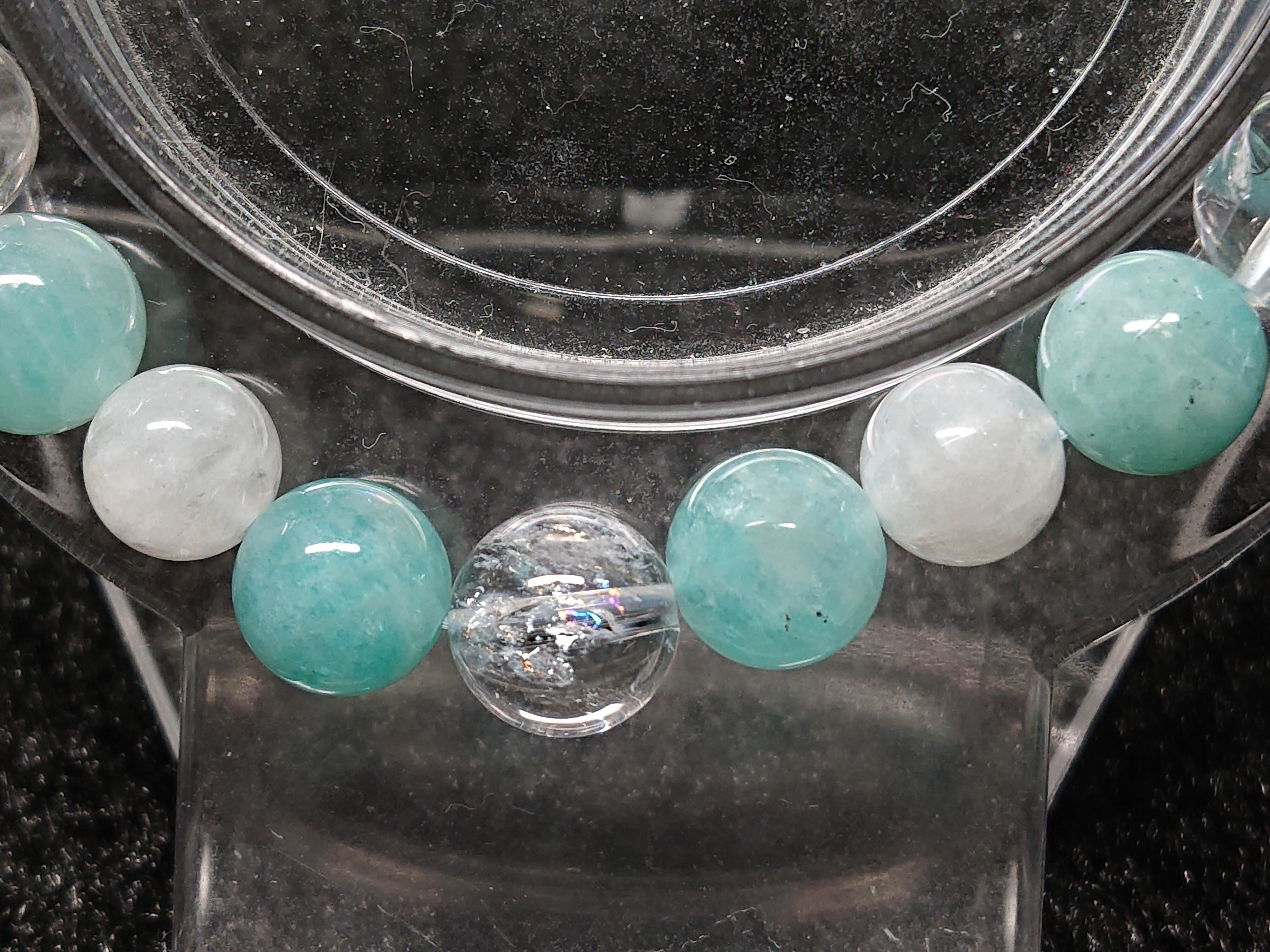 アイリス入り✨ヒマラヤエレスチャルクォーツ、アマゾナイト、レインボームーンストーン(ホワイトラブラドライト)