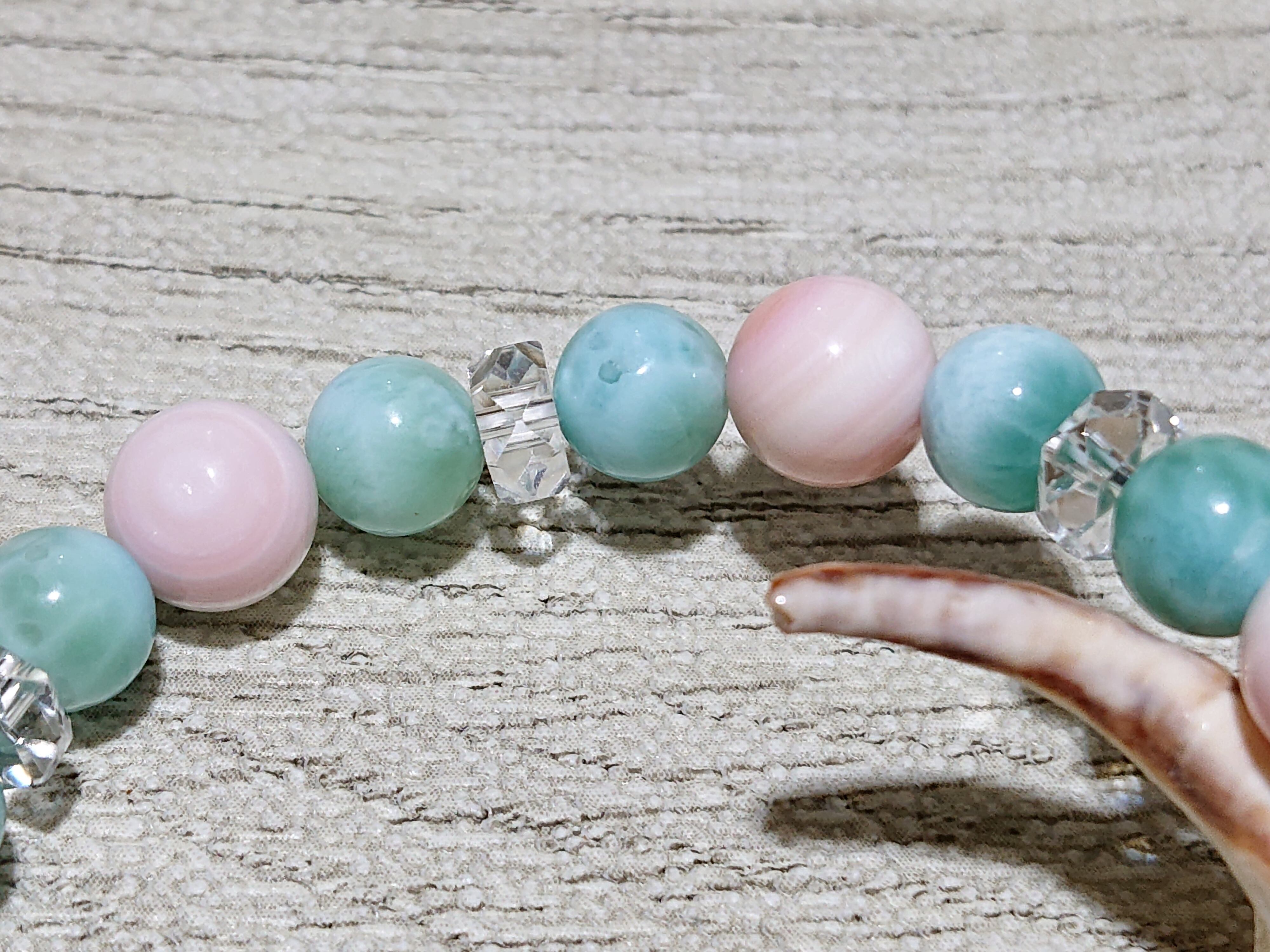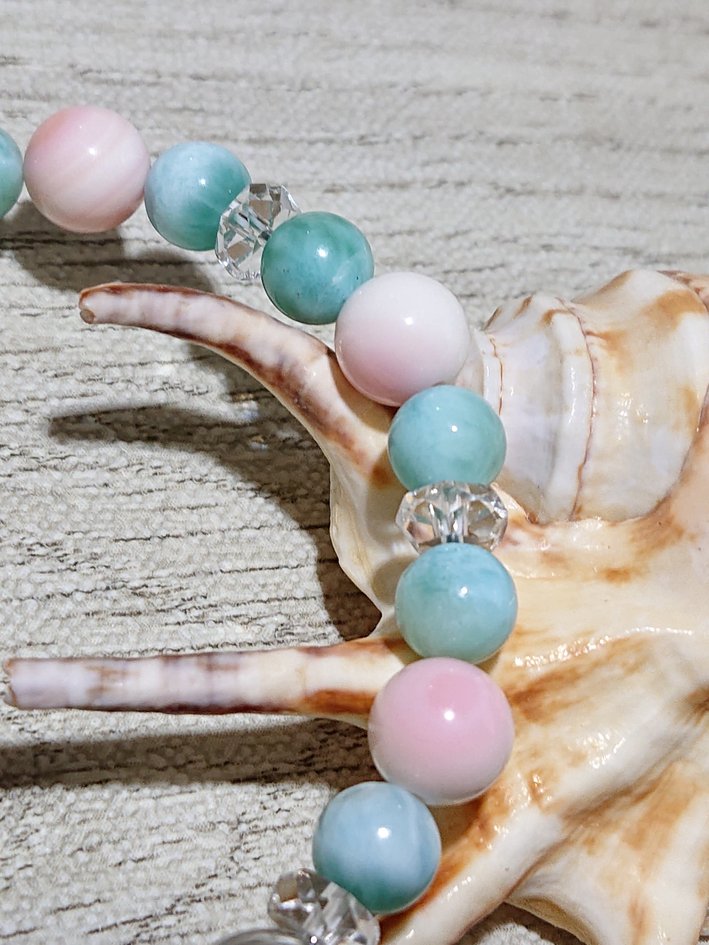 幸せの滴✨ラリマー(ブルーペクトライト)、クイーンコンクシェル、アイリスクォーツ(ヒマラヤ産)