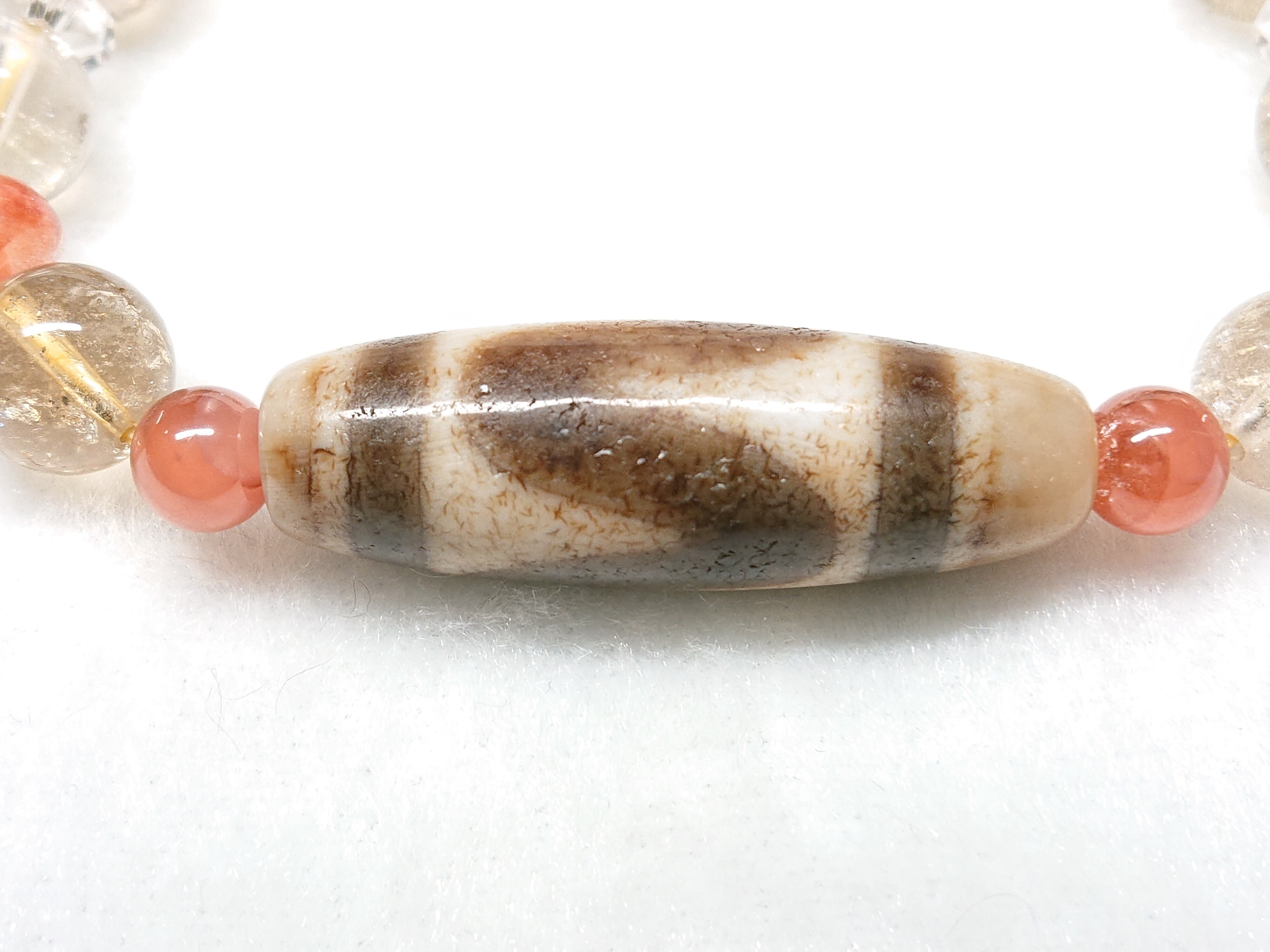 金紅の虎✨虎牙天珠(馬蹄紋入り)、シトリン(非加熱・アイリス入り)、アイスインカローズ、オーロラクォーツ(リモナイトインクォーツ)、オレンジキャッツアイルチルクォーツ