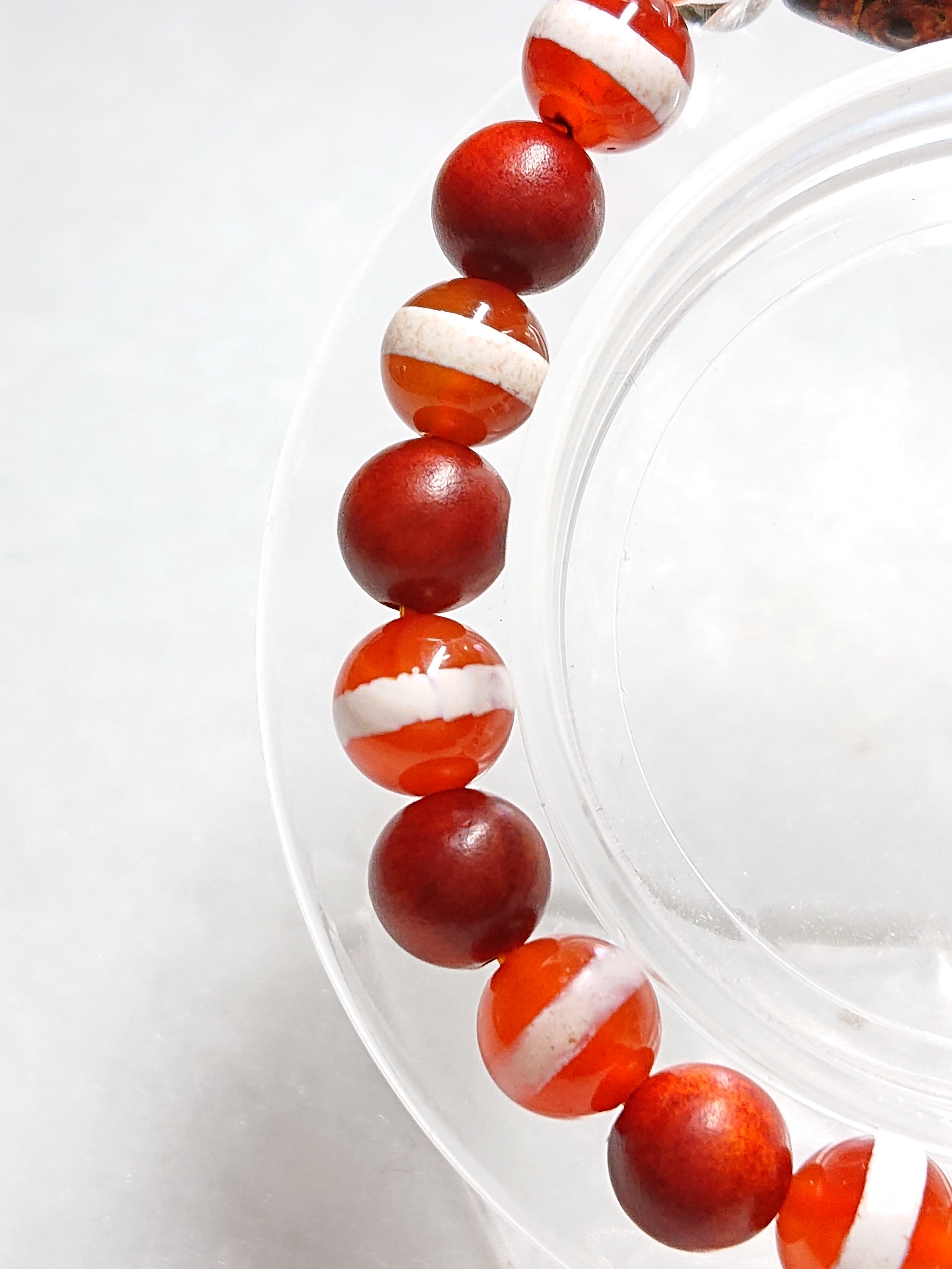 美しい紅色でまとめた縁起の良いブレスレットになります。