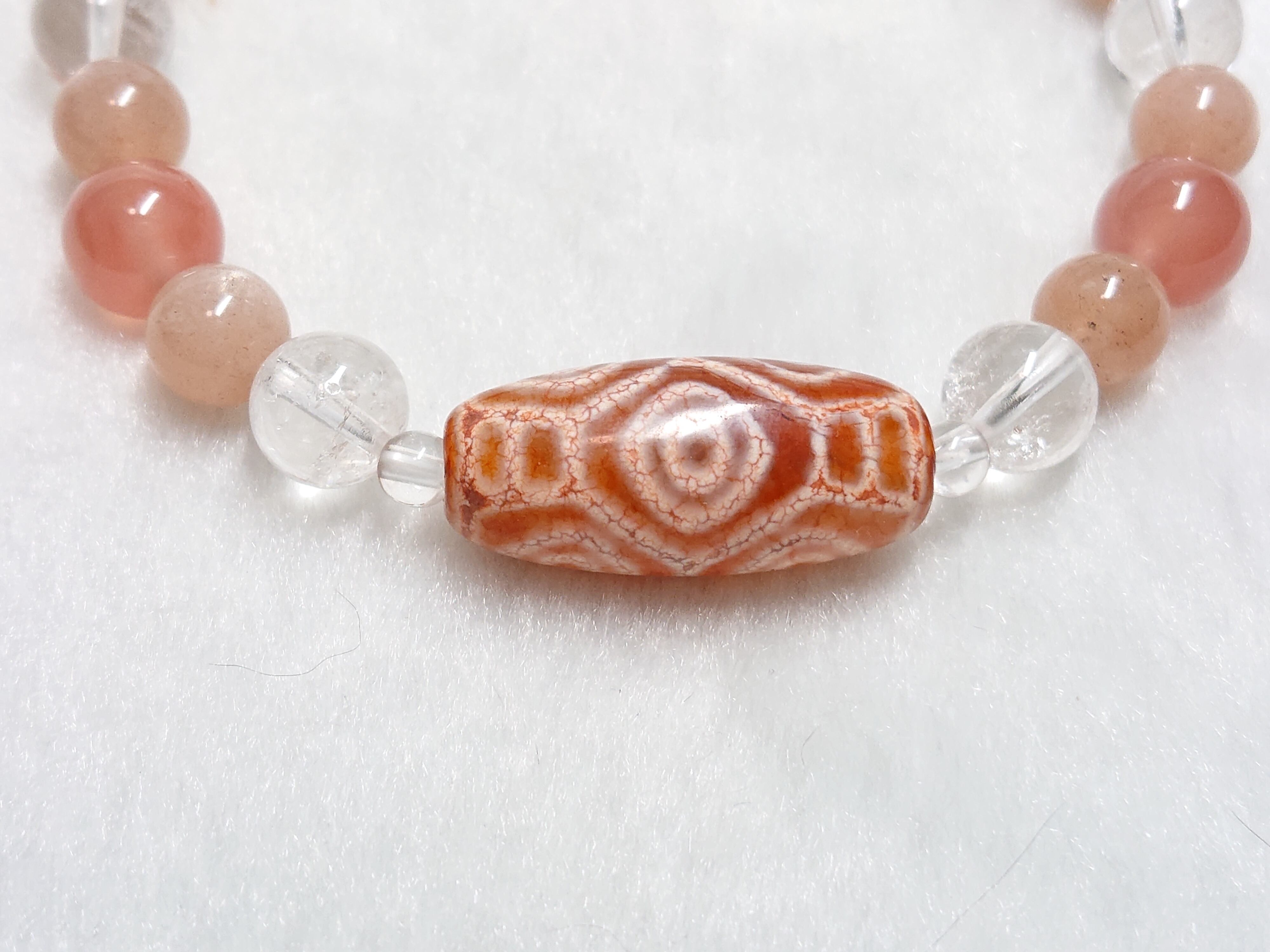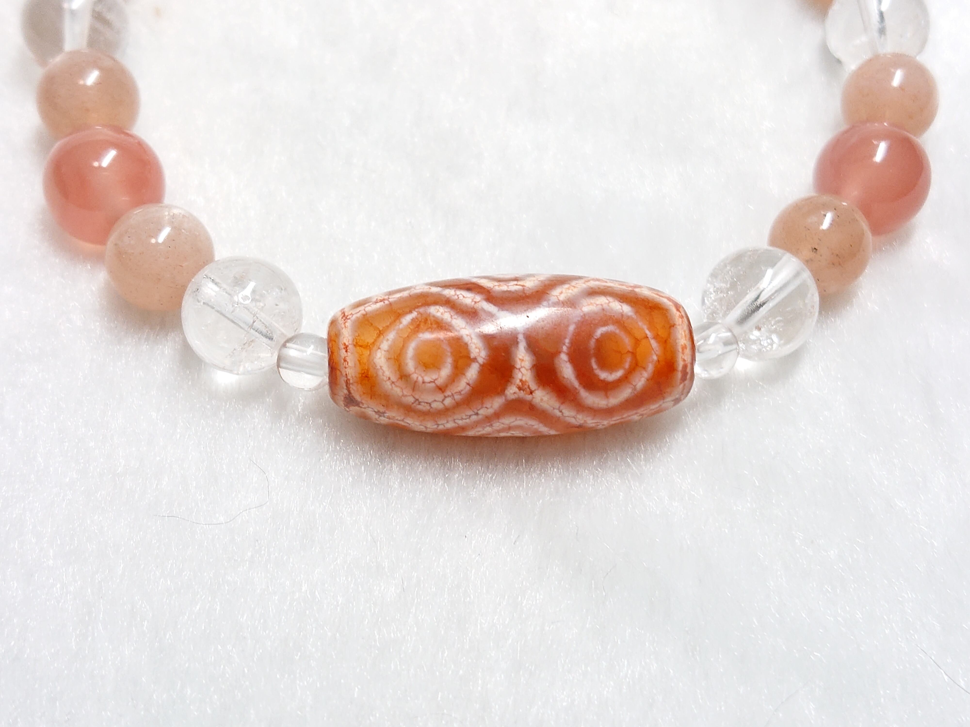 龍紋入り✨橙・龍眼天珠(チベット老玉髄天珠)、オレンジムーンストーン、トパーズ(非加熱)、カラフルアゲート(天然色)、水晶