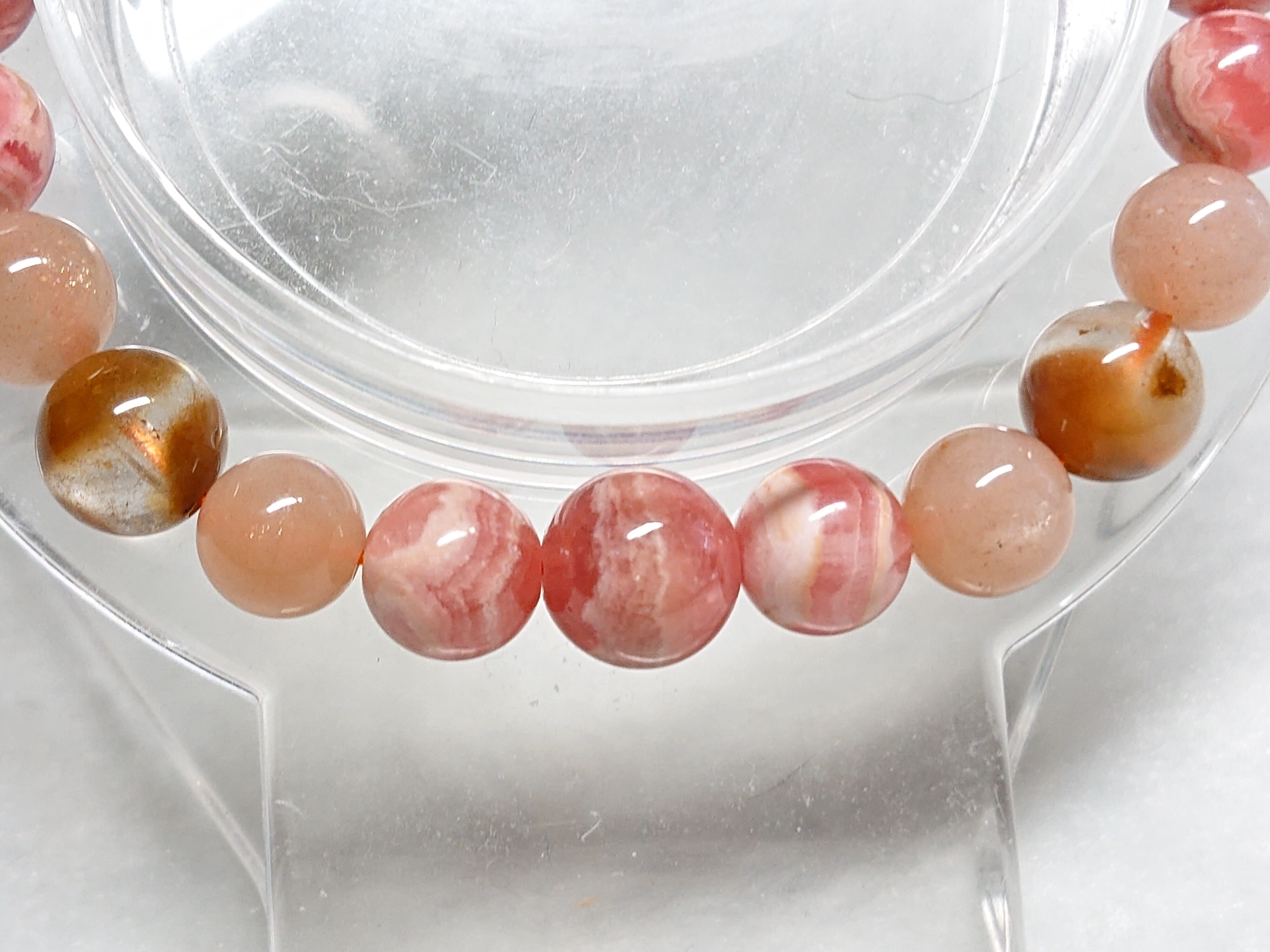 インカローズ(ロードクロサイト)、ゴールドルチルクォーツ(ファイバラスアグリゲーションクォーツ )、オレンジムーンストーン