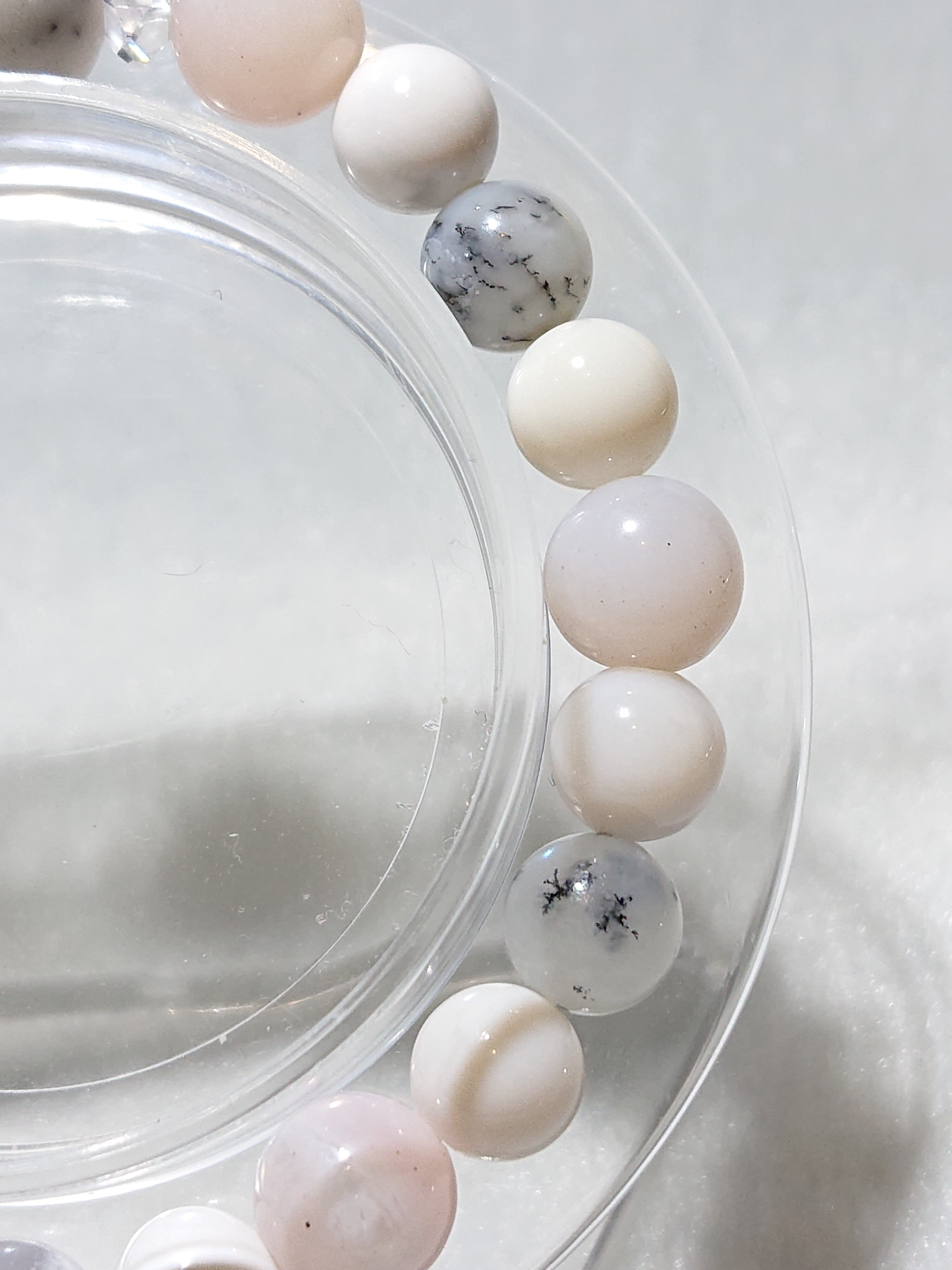 伝説の魔術師マーリンの名を戴いた石✨ デンドリック オパール (別名: メルリナイト 、 マーリナイト )、コモンオパール(ホワイト・ピンク)、水晶(ボタン)