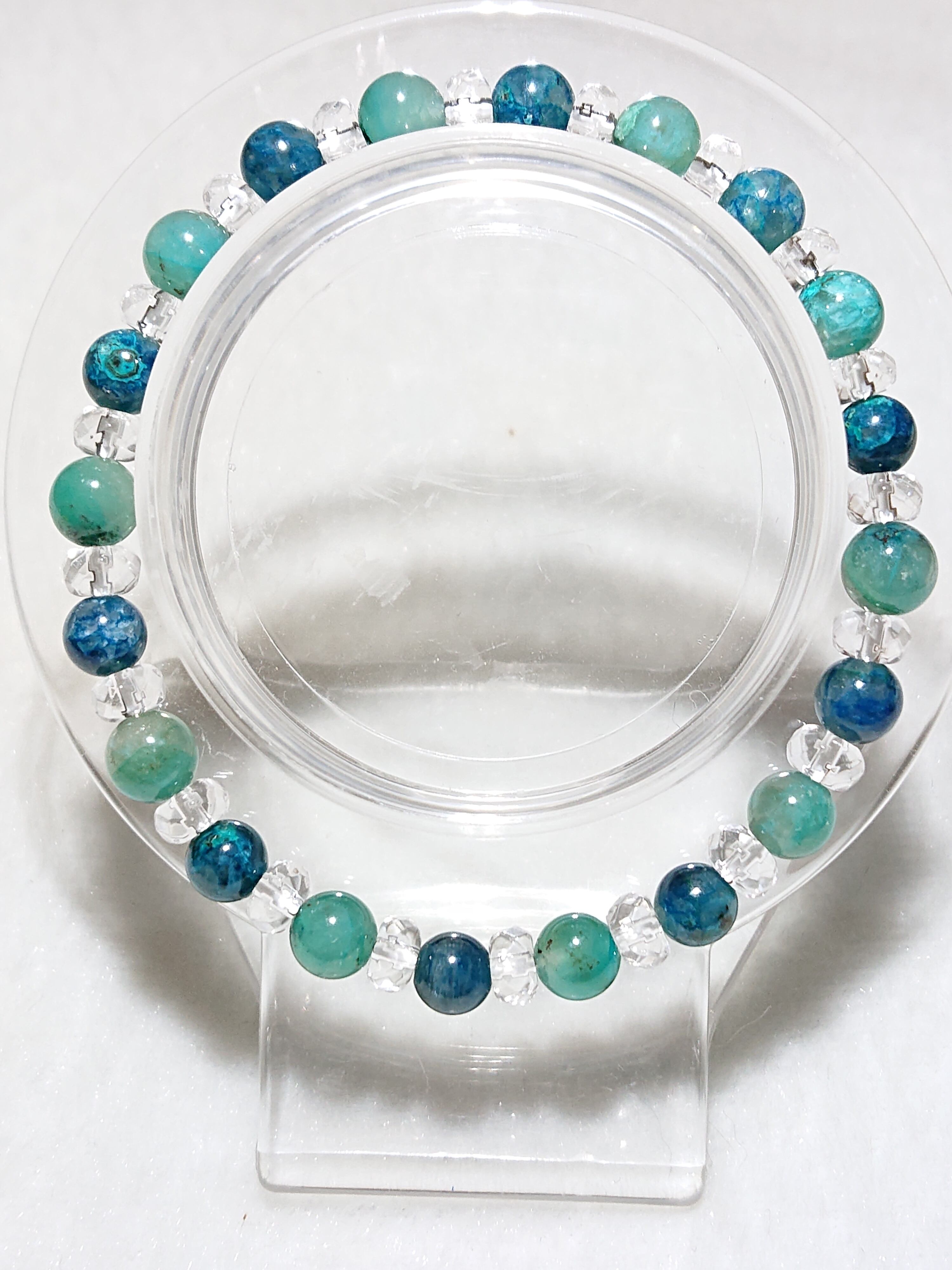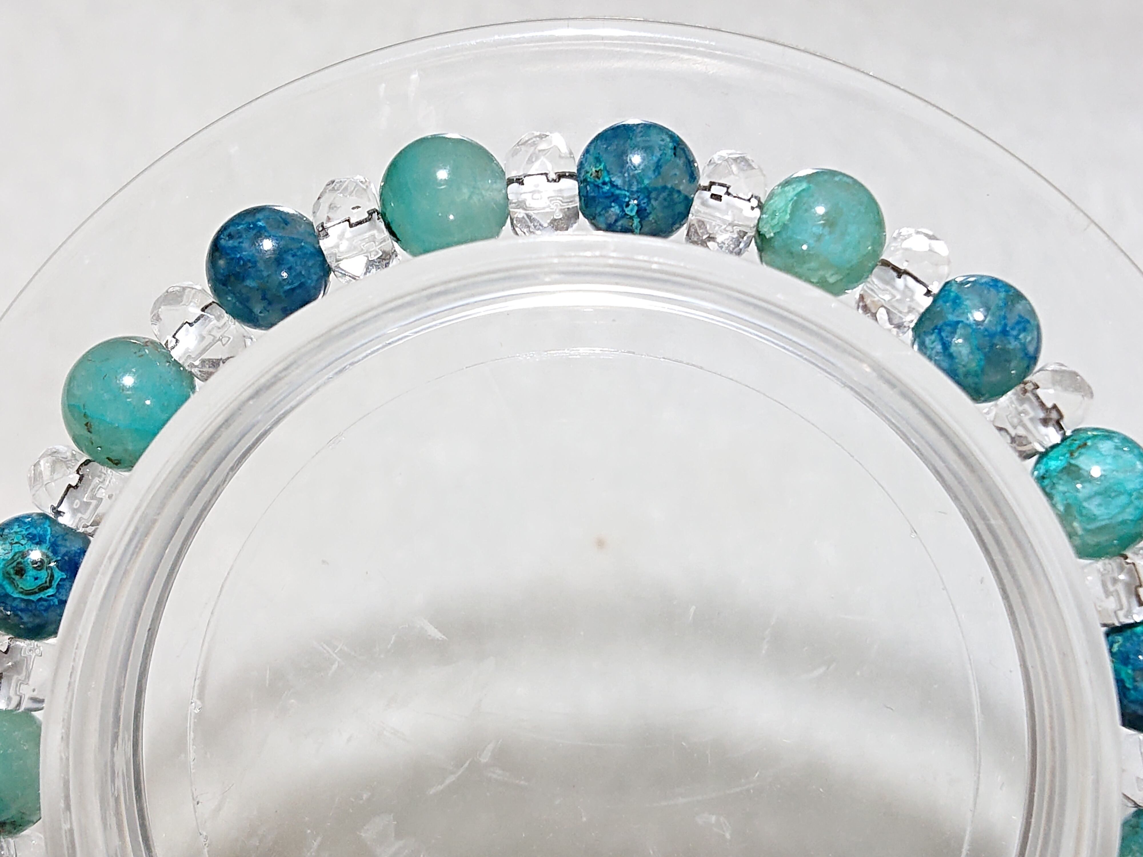 幸運や繁栄のお守り✨クリソコラ、ジェムシリカ(クリソコラシリカ)、水晶(ボタン)