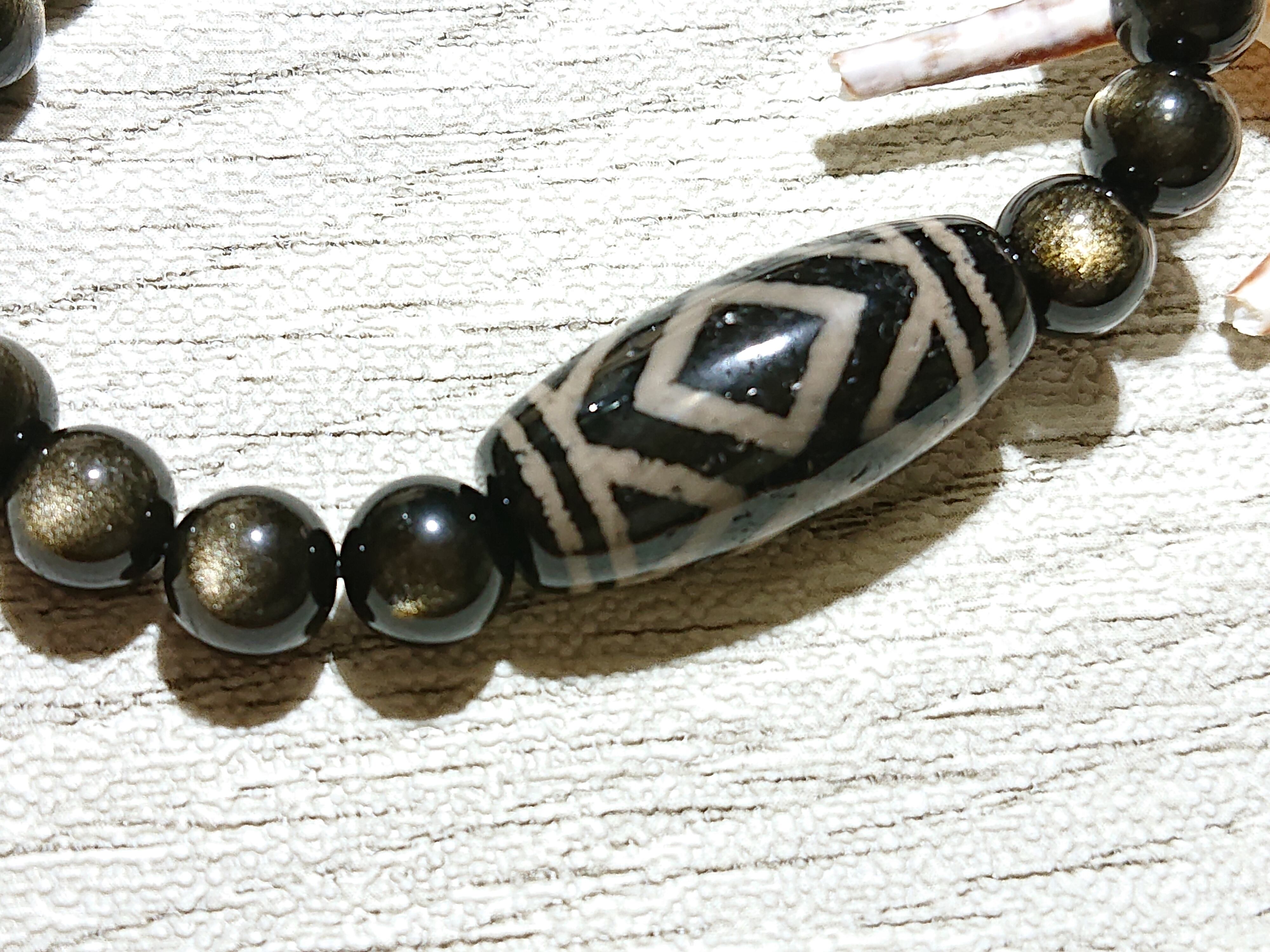 馬蹄紋入り✨金剛虎牙三眼天珠(馬蹄紋)、ゴールデンオブシディアン