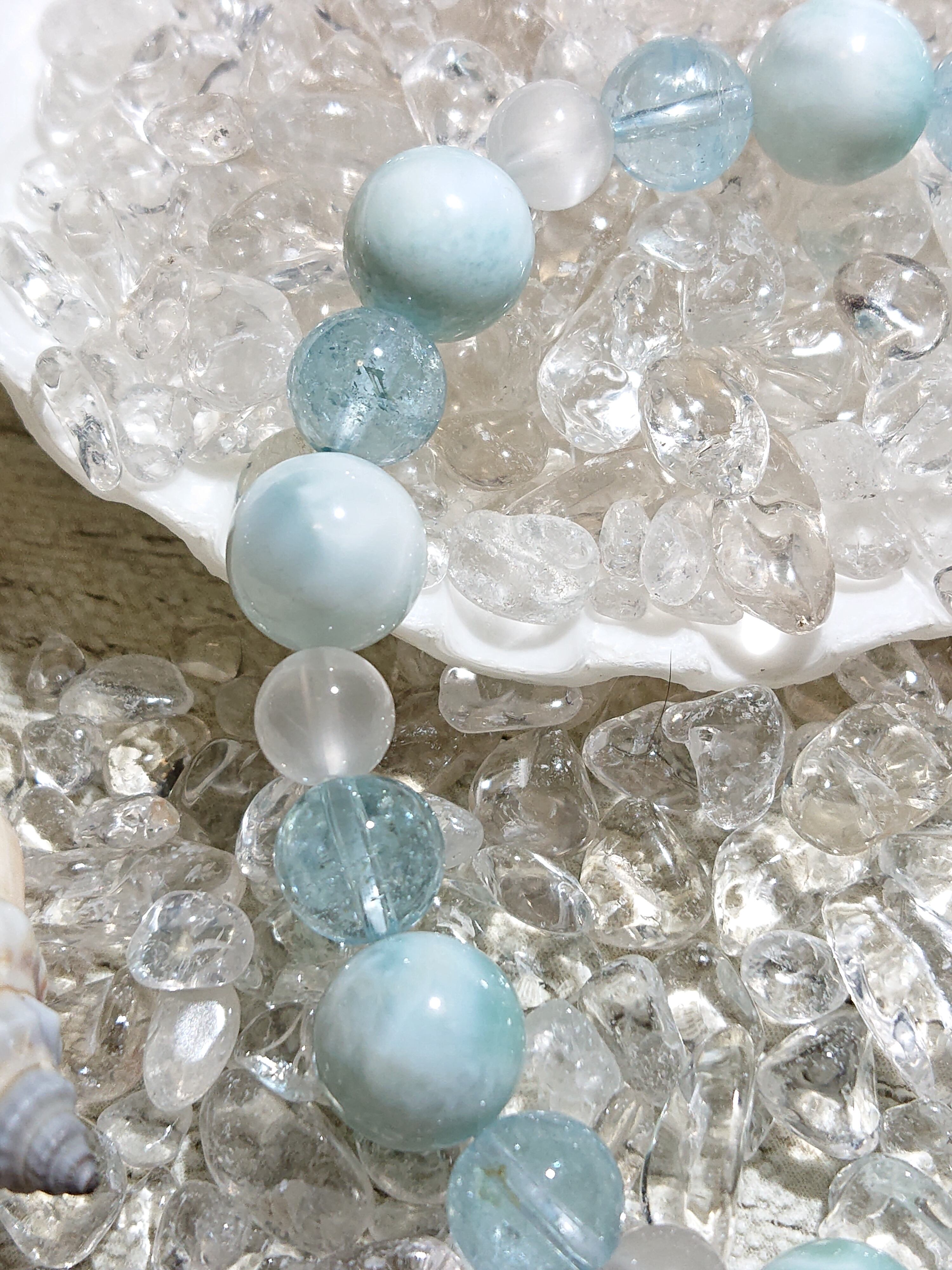 アイスラリマー(ブルーペクトライト)、ブルートパーズ(非加熱)、ラビットヘアーホワイトルチルクォーツ