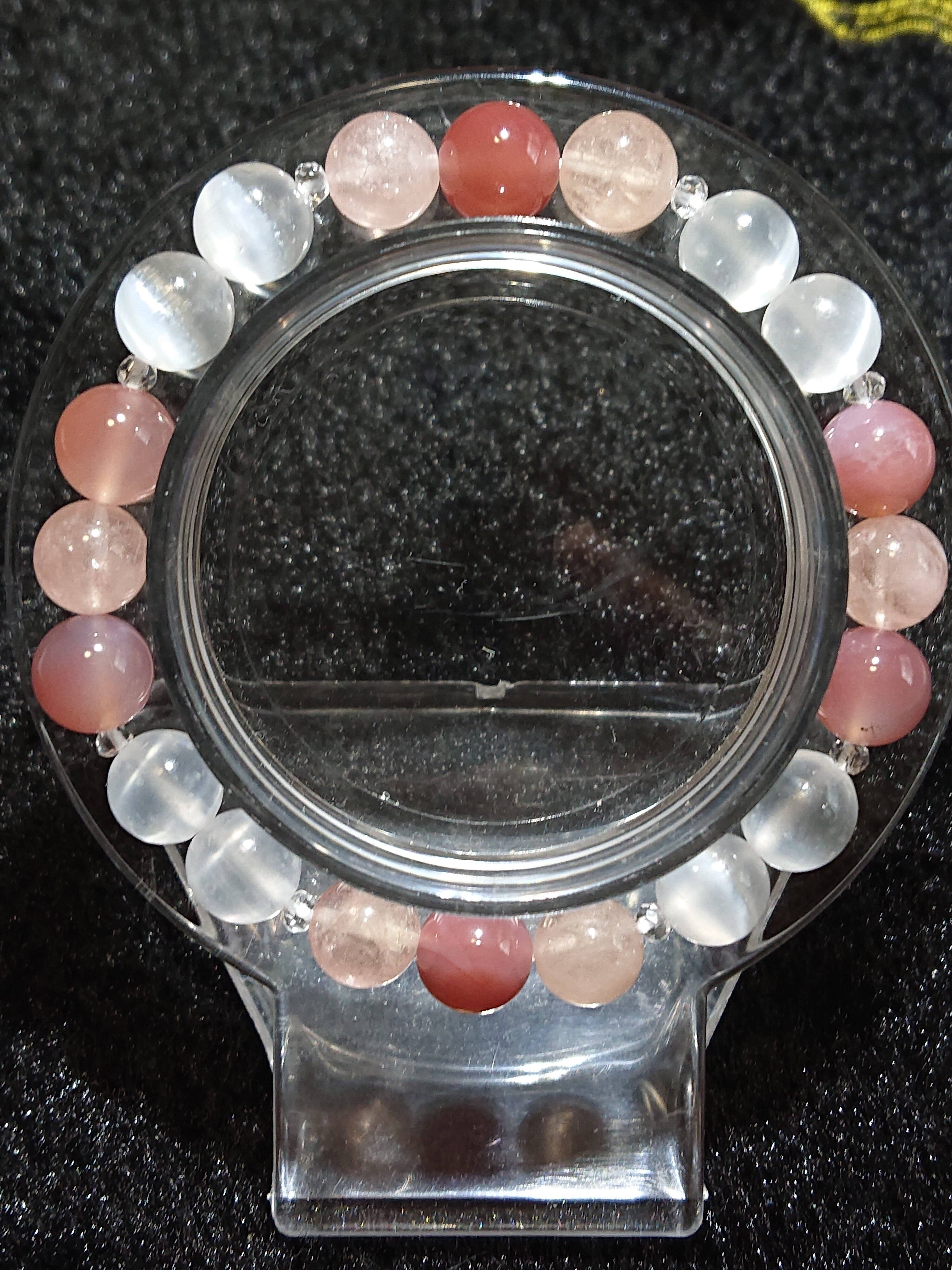 セレナイト、クンツァイト、カラフルアゲート(天然)、水晶(ボタン)