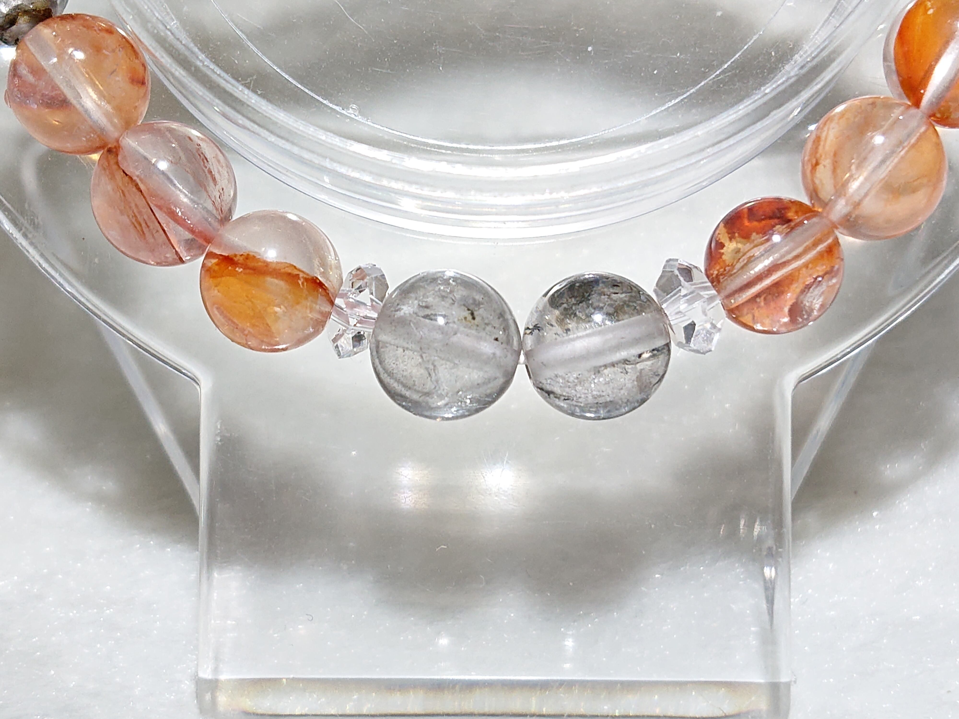 天然水晶の中にヘマタイトとリモナイトが染み込んだその後、長い時間をかけて再結晶した石です。