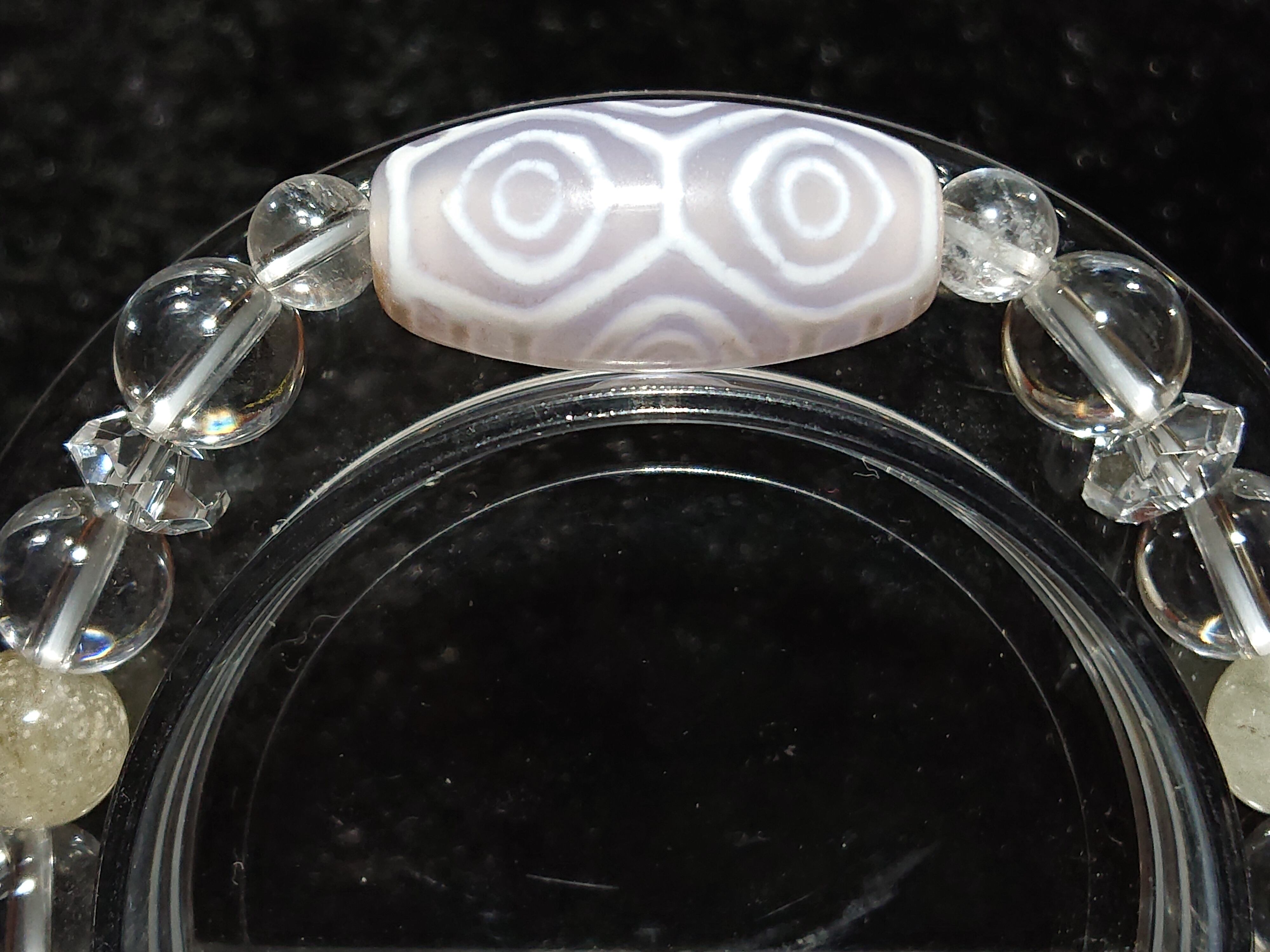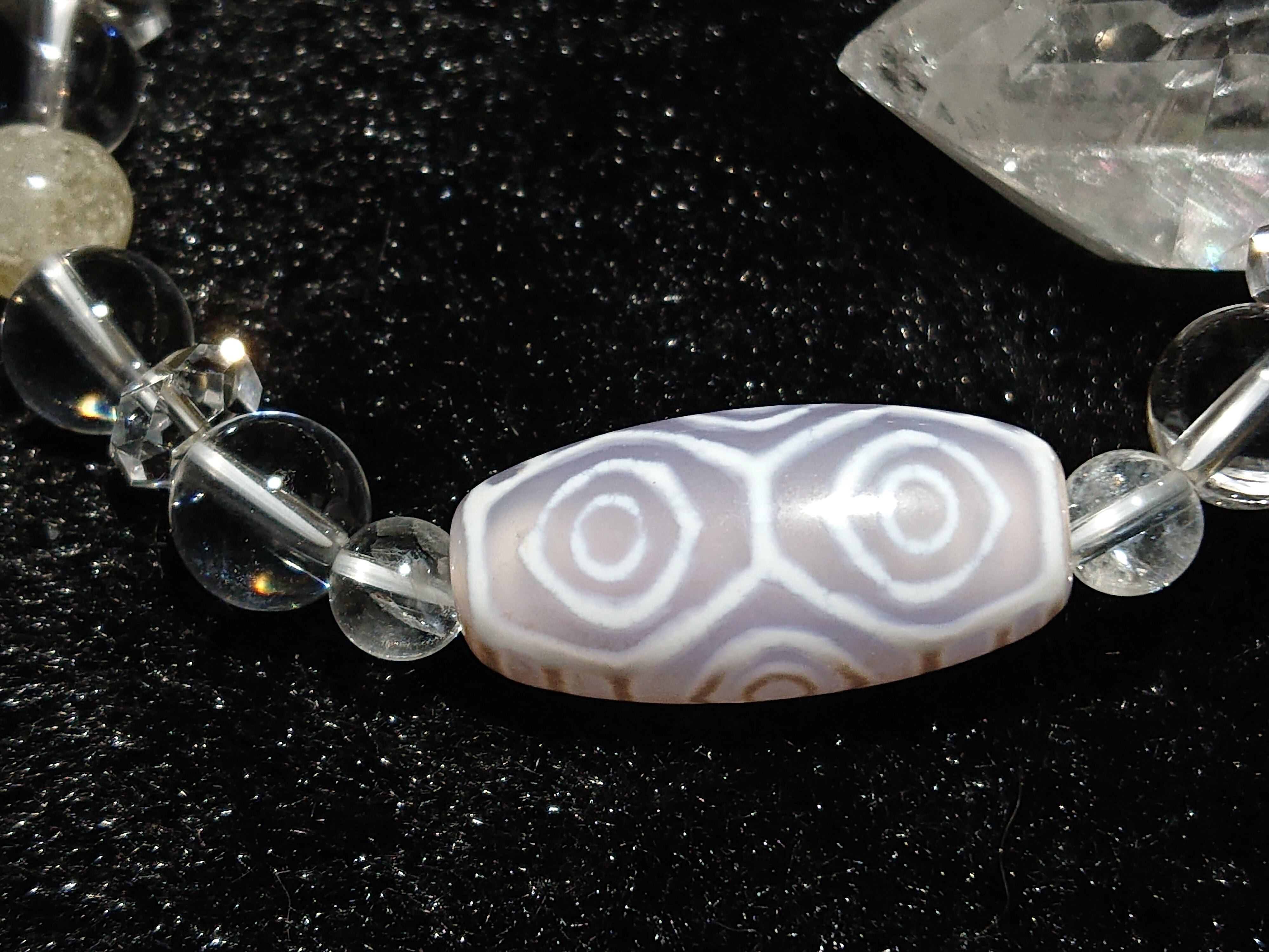 ヒマラヤエレスチャルクォーツは龍眼天珠の両側に組み合わせています。