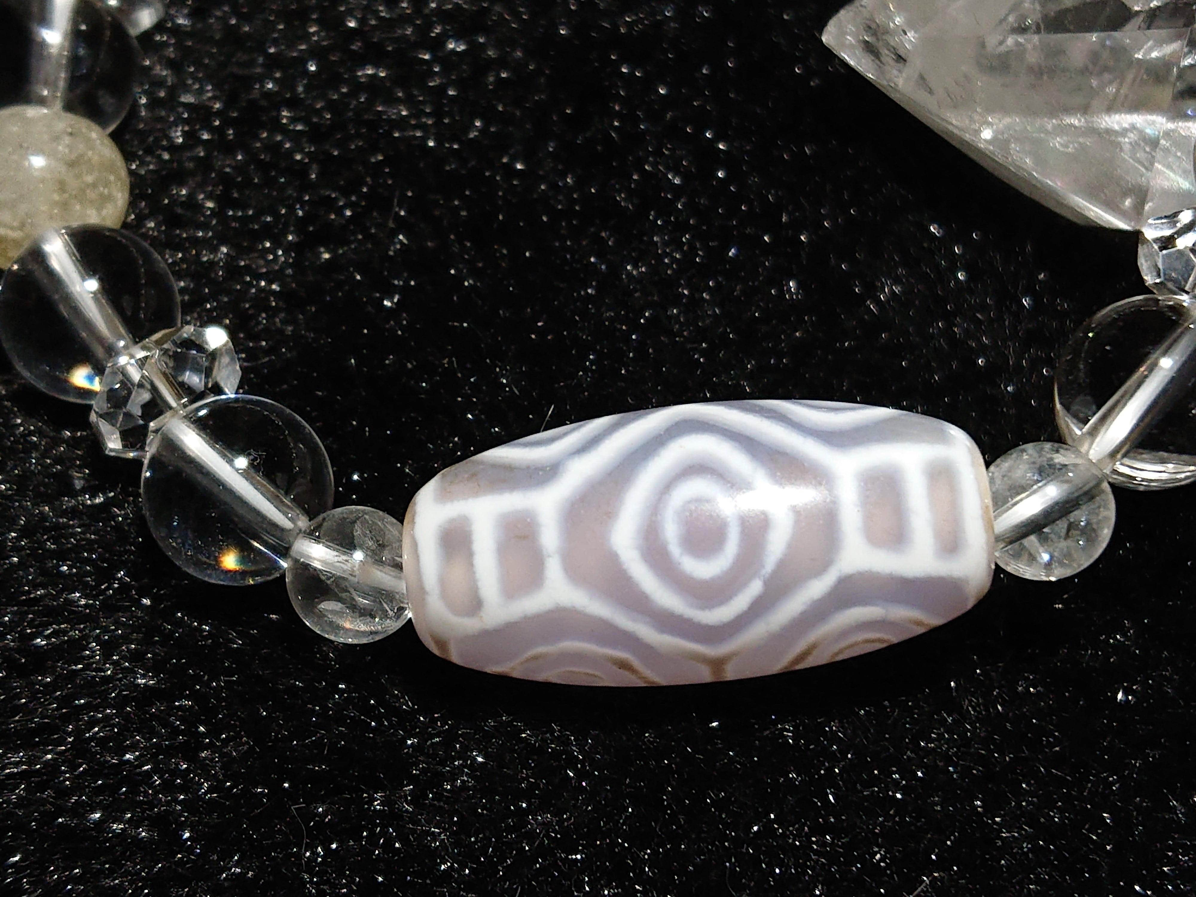 ゆきのはな様ご予約品✨龍眼天珠(チベット老玉髄天珠)、リビアングラス、ヒマラヤエレスチャルクォーツ、水晶(ボタン)